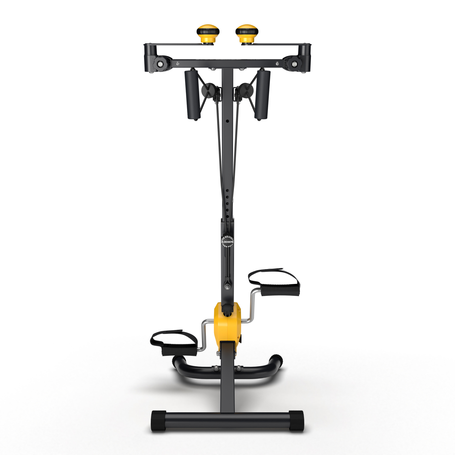 Велотренажёр двойной DFC B810W с накладками и ручками ярко-жёлтого цвета для домашнего использования. Многофункциональная модель позволяет тренировать как руки, так