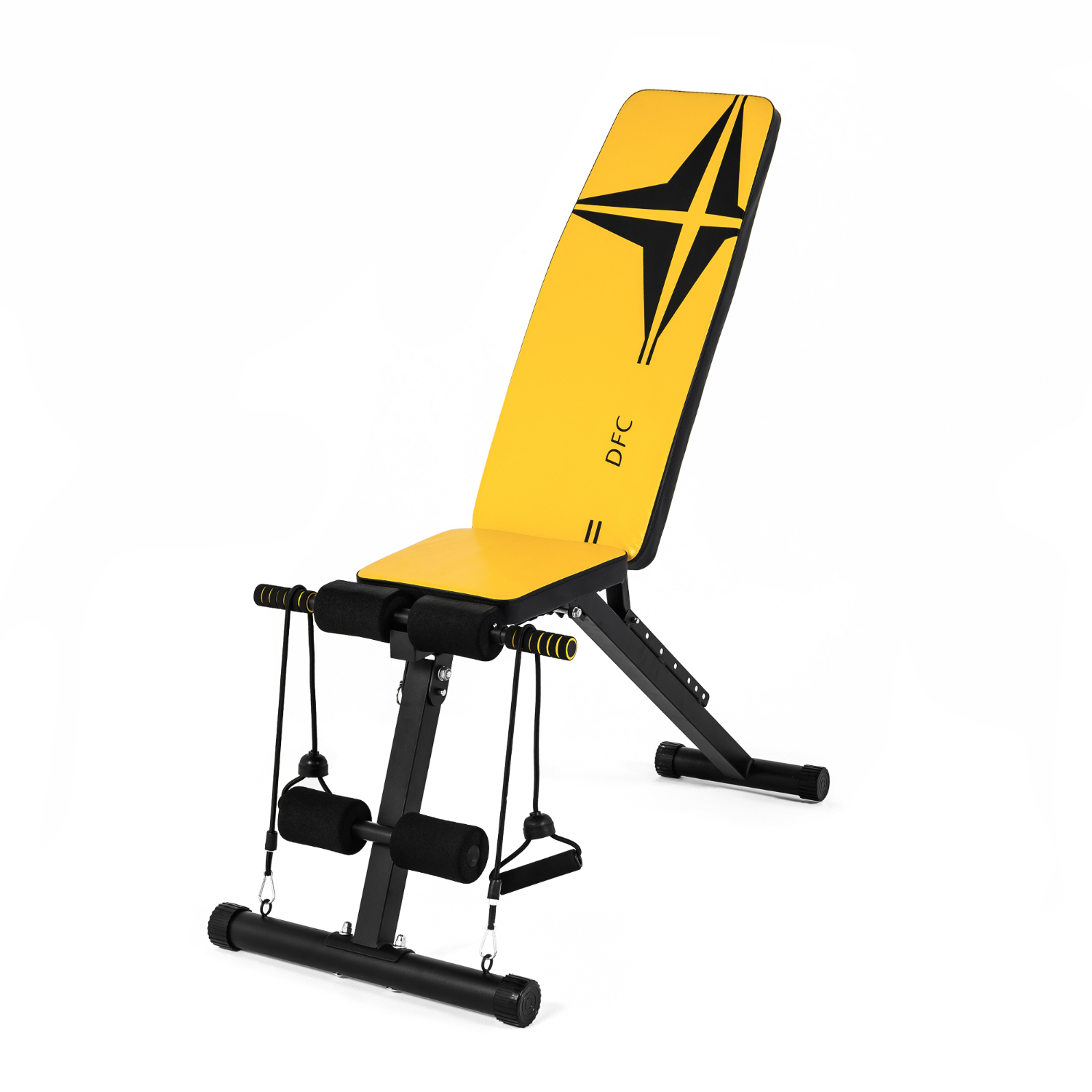 Скамья универсальная с эспандерами DFC D008Y — универсальный тренажер для домашних тренировок, который эффективно прорабатывает грудные мышцы, плечи, бицепсы, трицепсы
