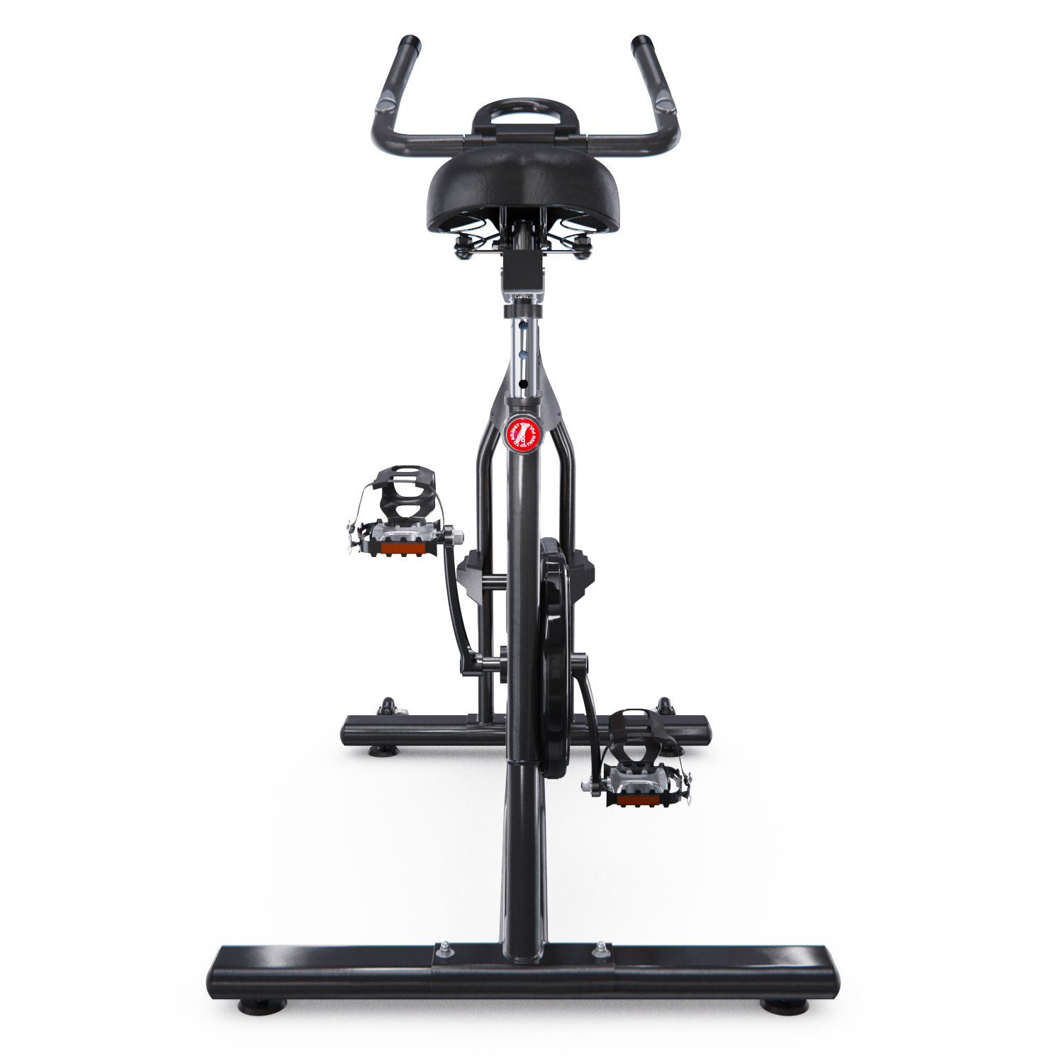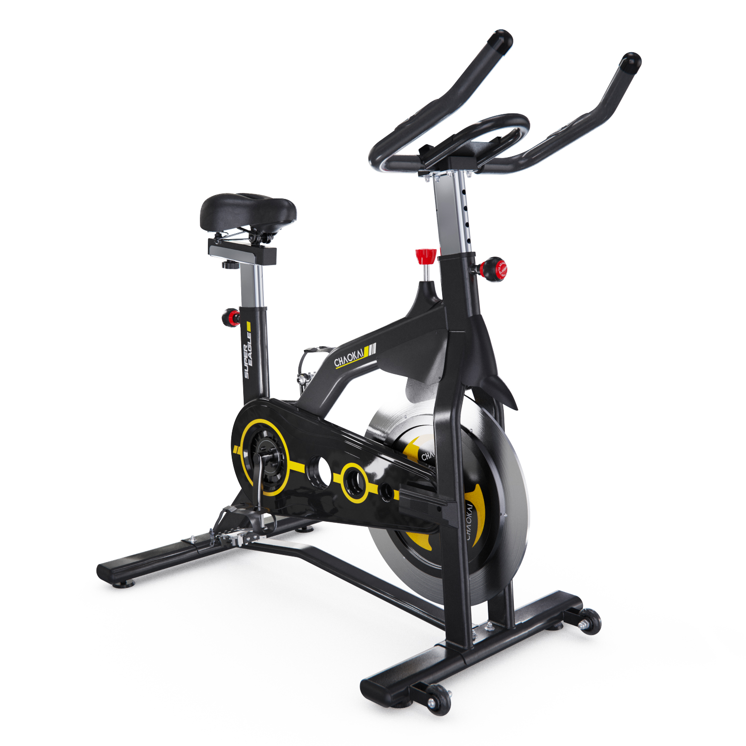 Спин-байк CHAOKE чёрного цвета удобнее и тише других. Прочная стальная рама и алюминиевый маховик весом 19 килограмм обеспечивают устойчивость во время