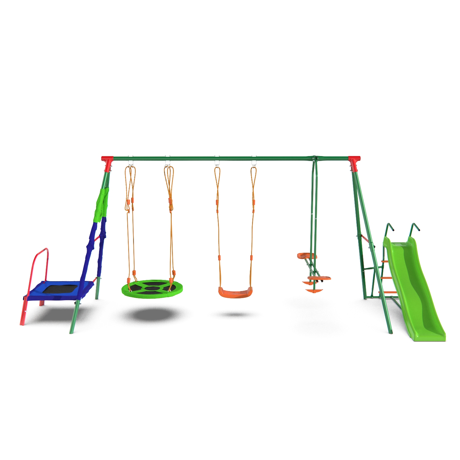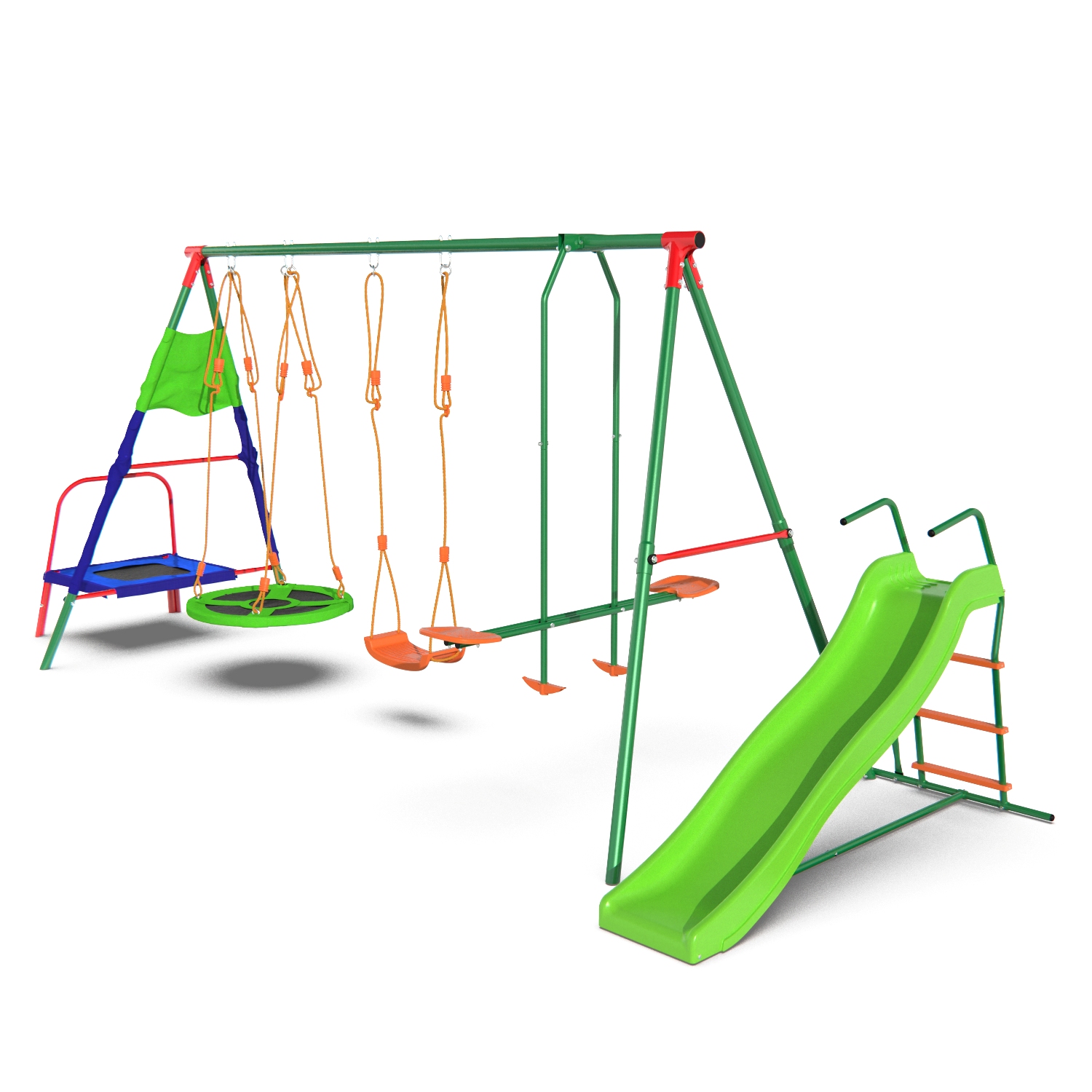 Детский комплекс DFC MULTIPLAY качели: планер, верёвочные, гнездо; мини-батут и горка