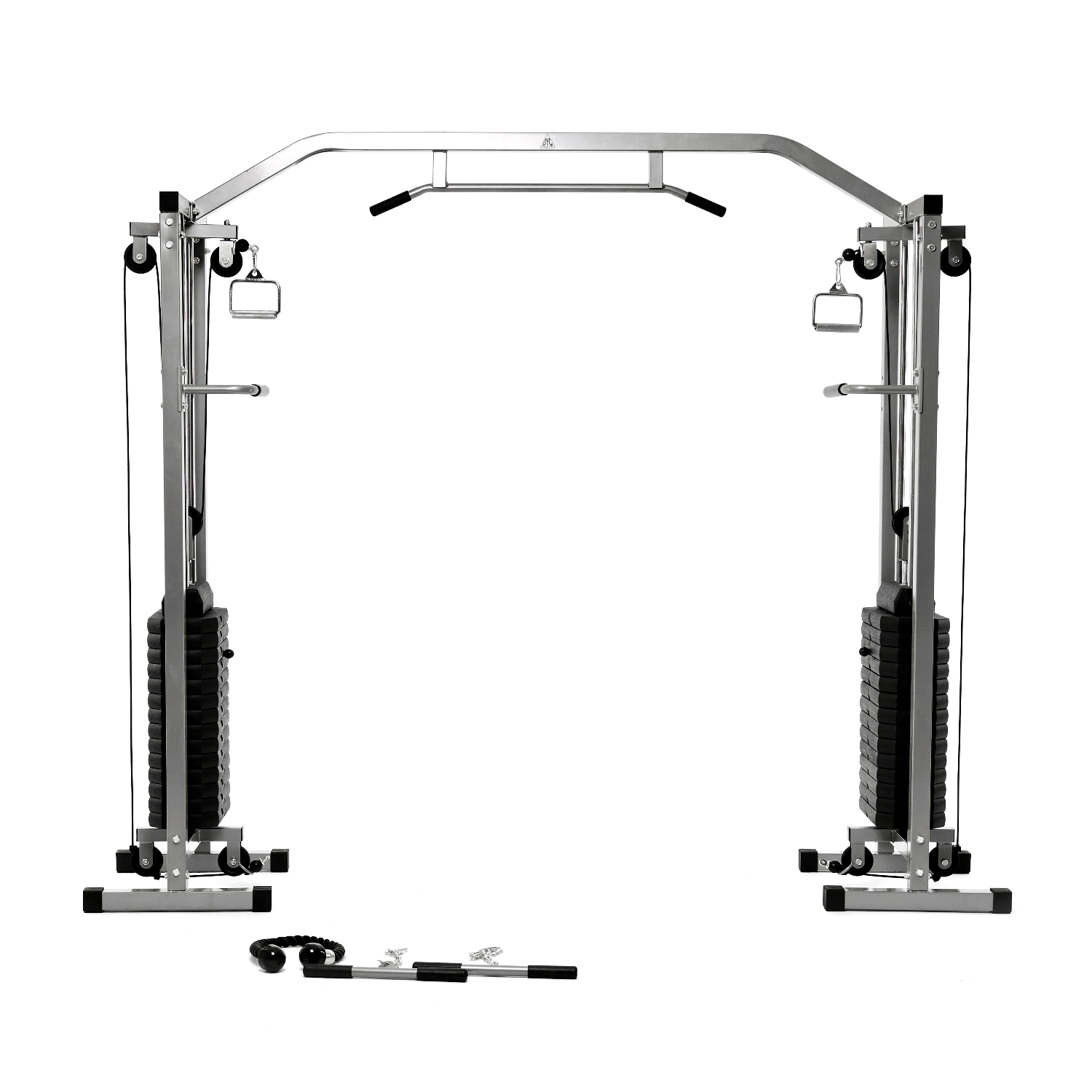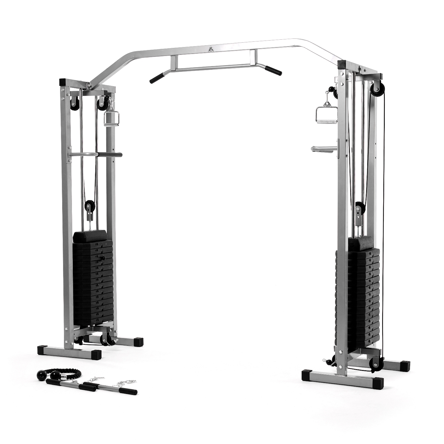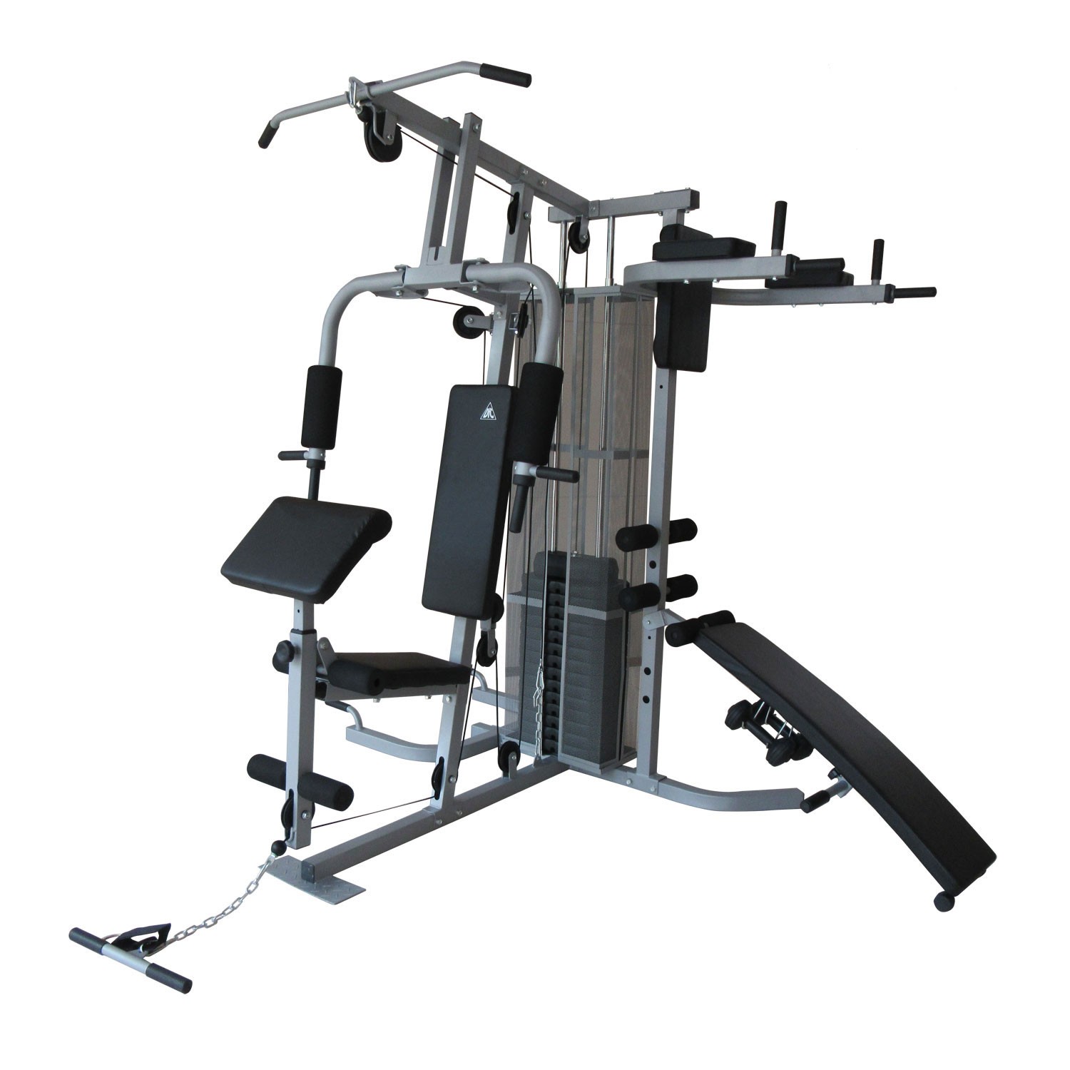 Многофункциональный тренажер с встроенным весовым стеком. Позволяет выполнять комплекс упражнений на различные группы мышц. Дополнительно тренажер имеет брусья для отжимания