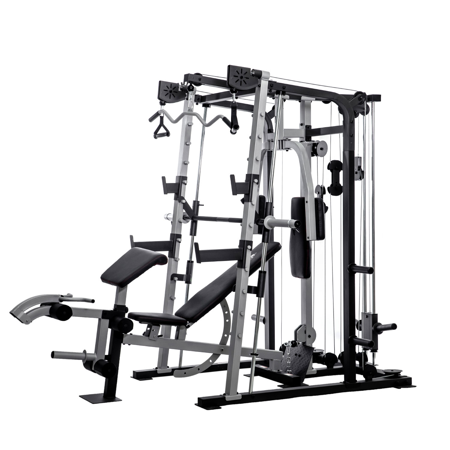Силовая станция со скамьей на базе Машины Смита. В США продается под брендом Gold Gym — лидера силовых тренажеров. В