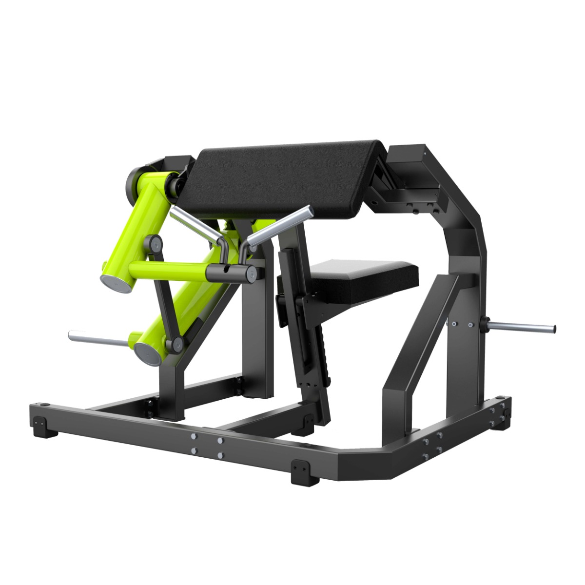 Тренажер предназначен для выполнения движения жим ногой назад, направленного на тренировку следующей группы мышц: большая ягодичная, средняя ягодичная, полусухожильная, тонкая