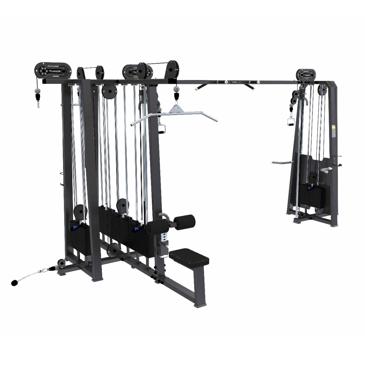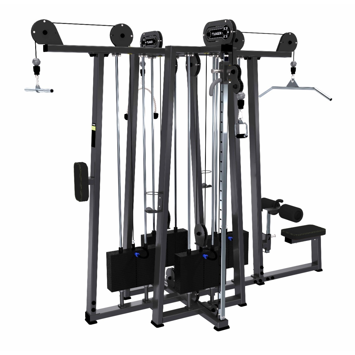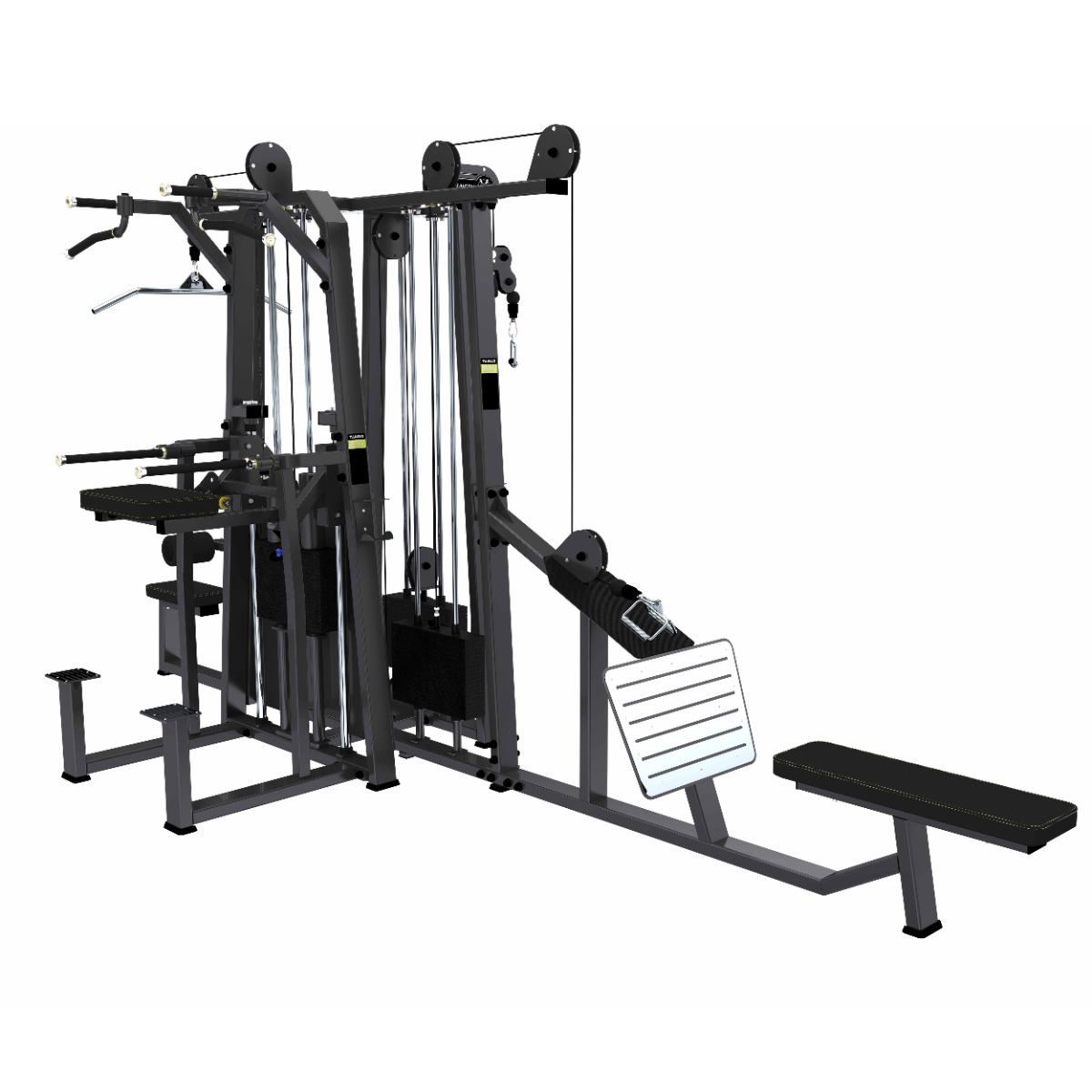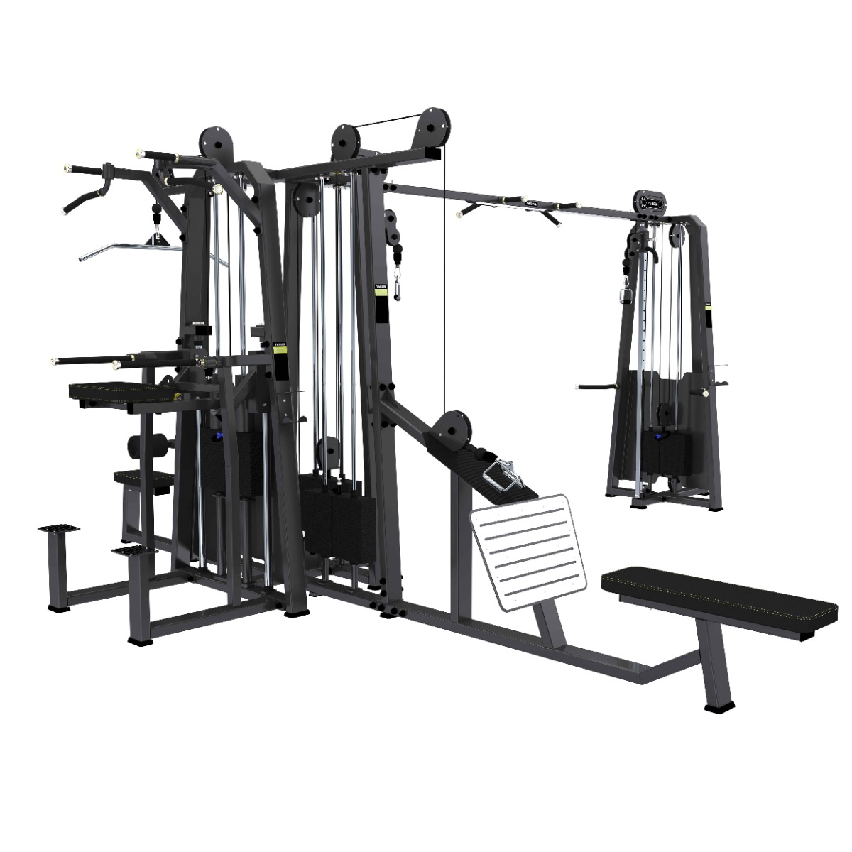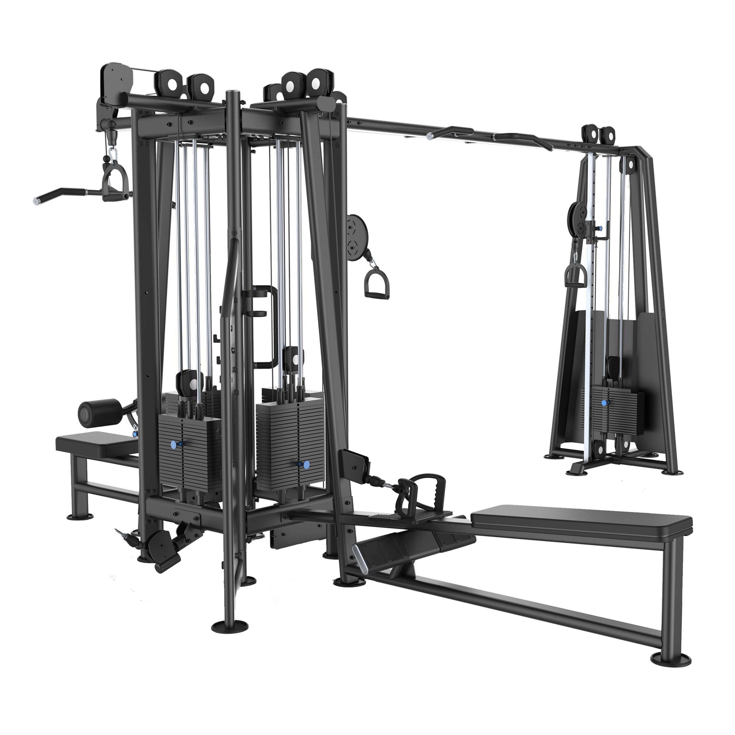 Многофункциональный комплекс A-30647 предназначен для спортивных залов с высокой и средней проходимостью. Универсальная конструкция, включающая 5 стеков и выполняющая функции