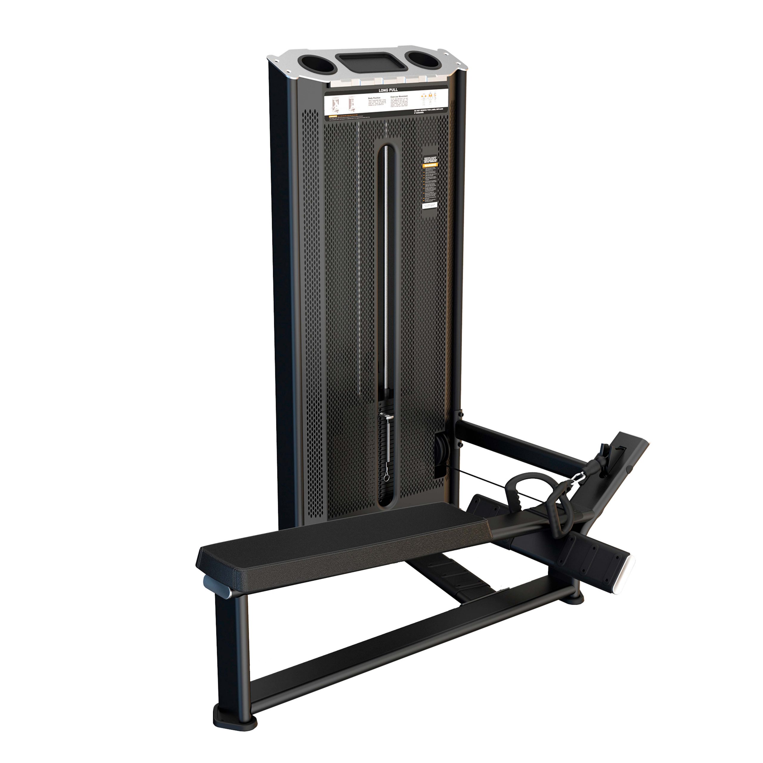 Современный и эргономичный тренажер для тренировки мышц плечевого пояса. Блок установлен таким образом, что спортсмену одинаково удобно выполнять движения как