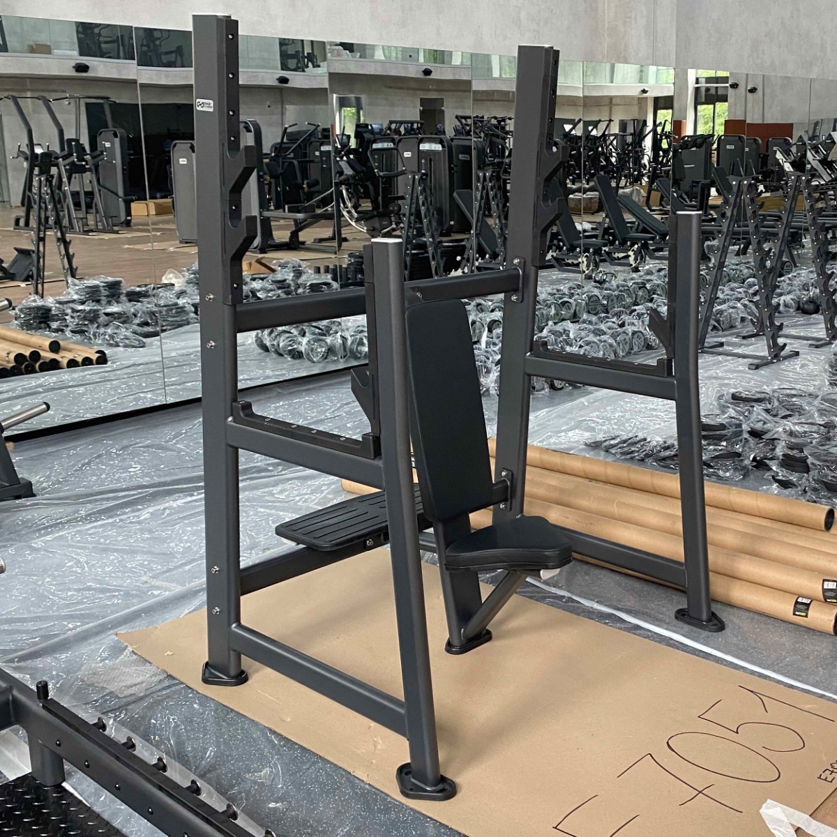 Профессиональный тренажер для коммерческого использования E7051 Скамья для вертикального жима штанги предназначен для проработки дельтовидных, надостных, трапециевидных мышц, ромбовидных, передних