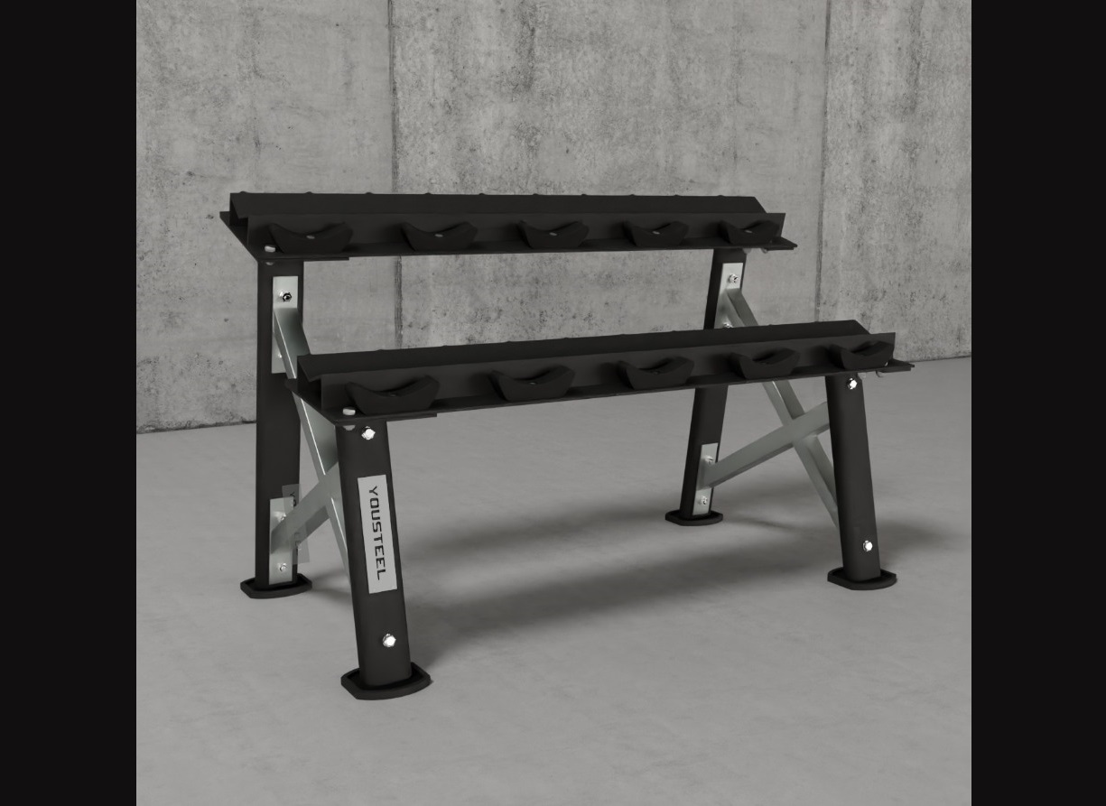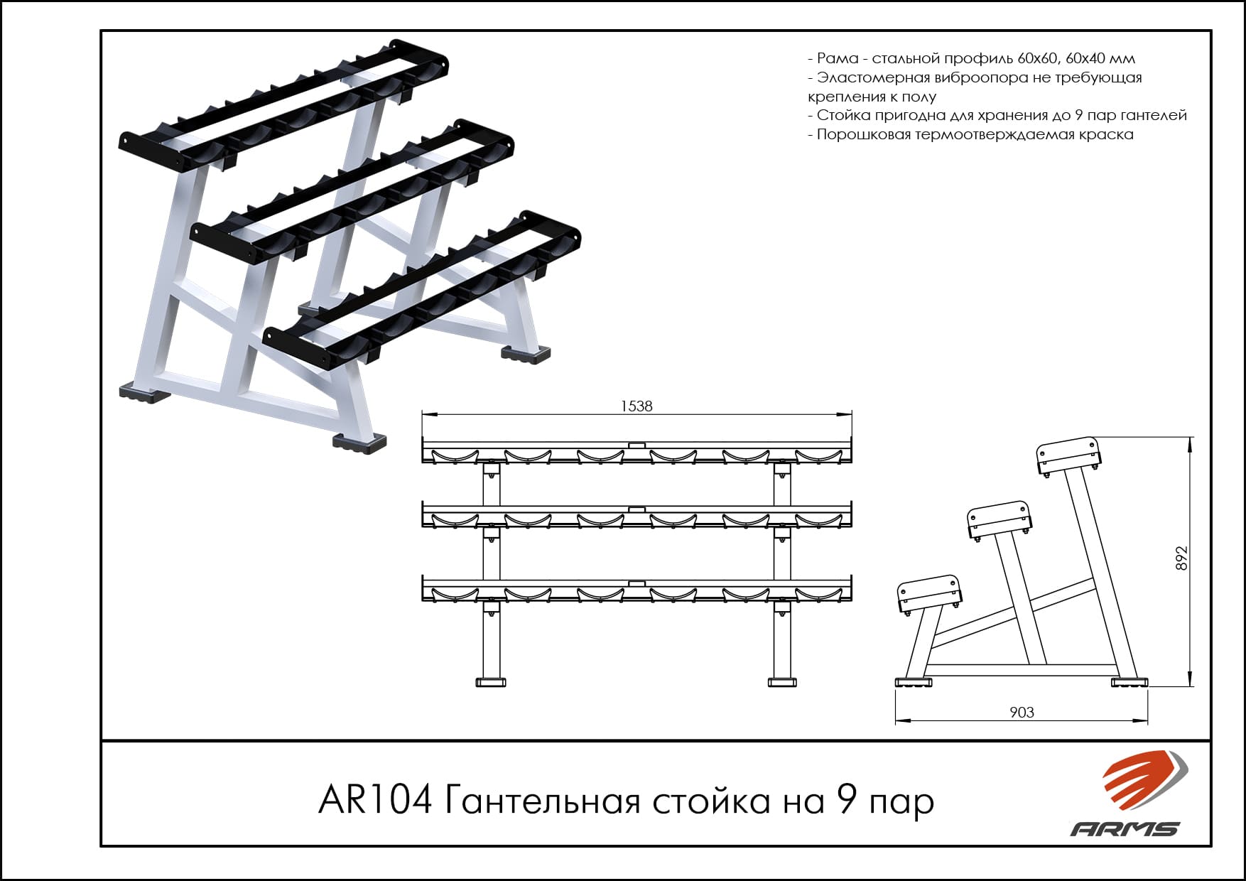 Стойка для памп-штанг на 10 наборов, изготовленная из высококачественных стальных труб и с использованием профессиональных технологий сварки, обеспечивает исключительную прочность