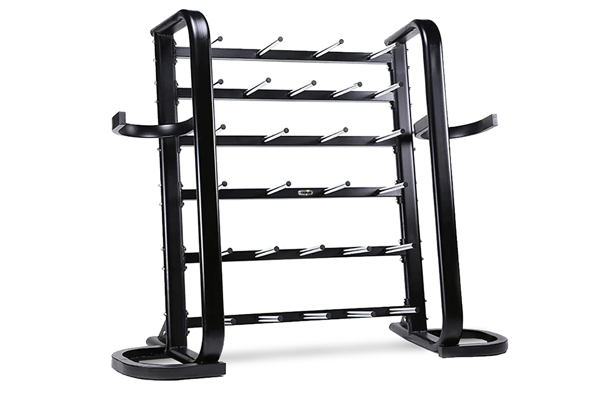 Стойка для 10 штанг A-3055 Стойка для штанг А-3055 соответствует всем требованиям профессионального оборудования. Конструктивные элементы рамы изготовлены из высококачественной стали,