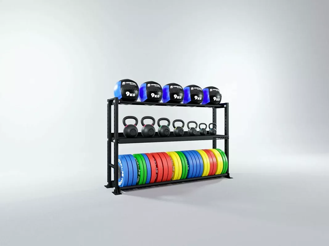 Модульные стеллажи YOUSTEEL – универсальное и простое решение по организации эффективного хранения вашего оборудования в зале. Они отлично вписываются в