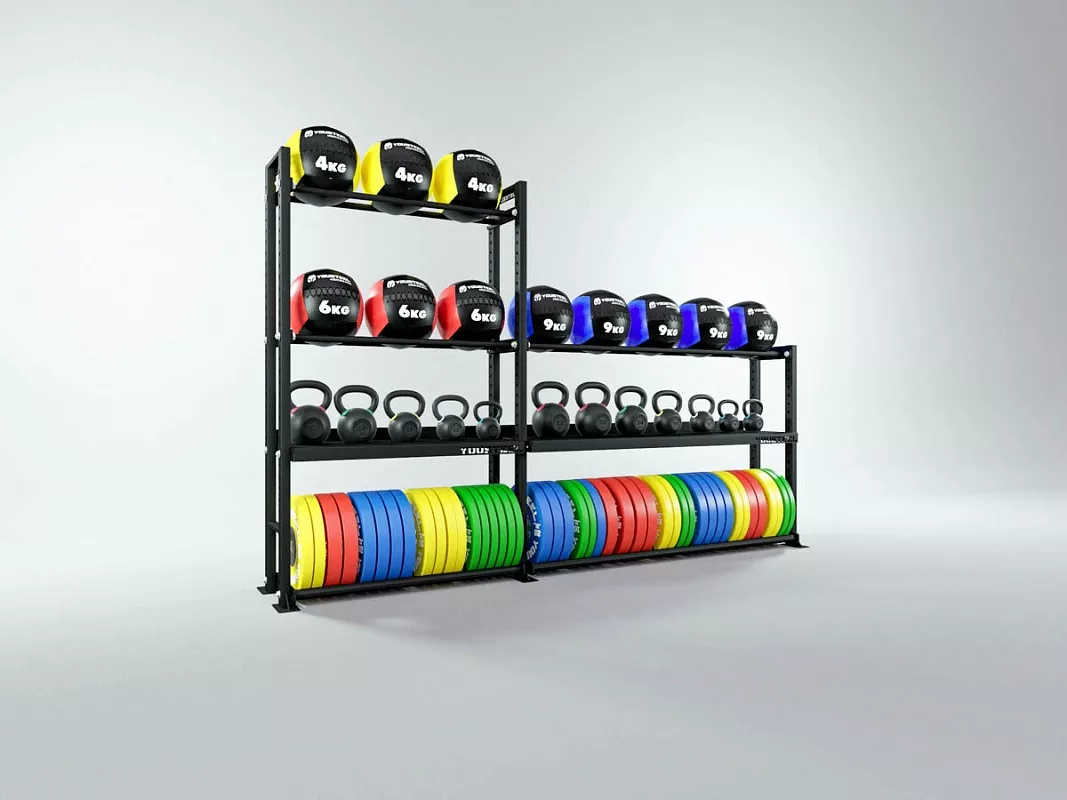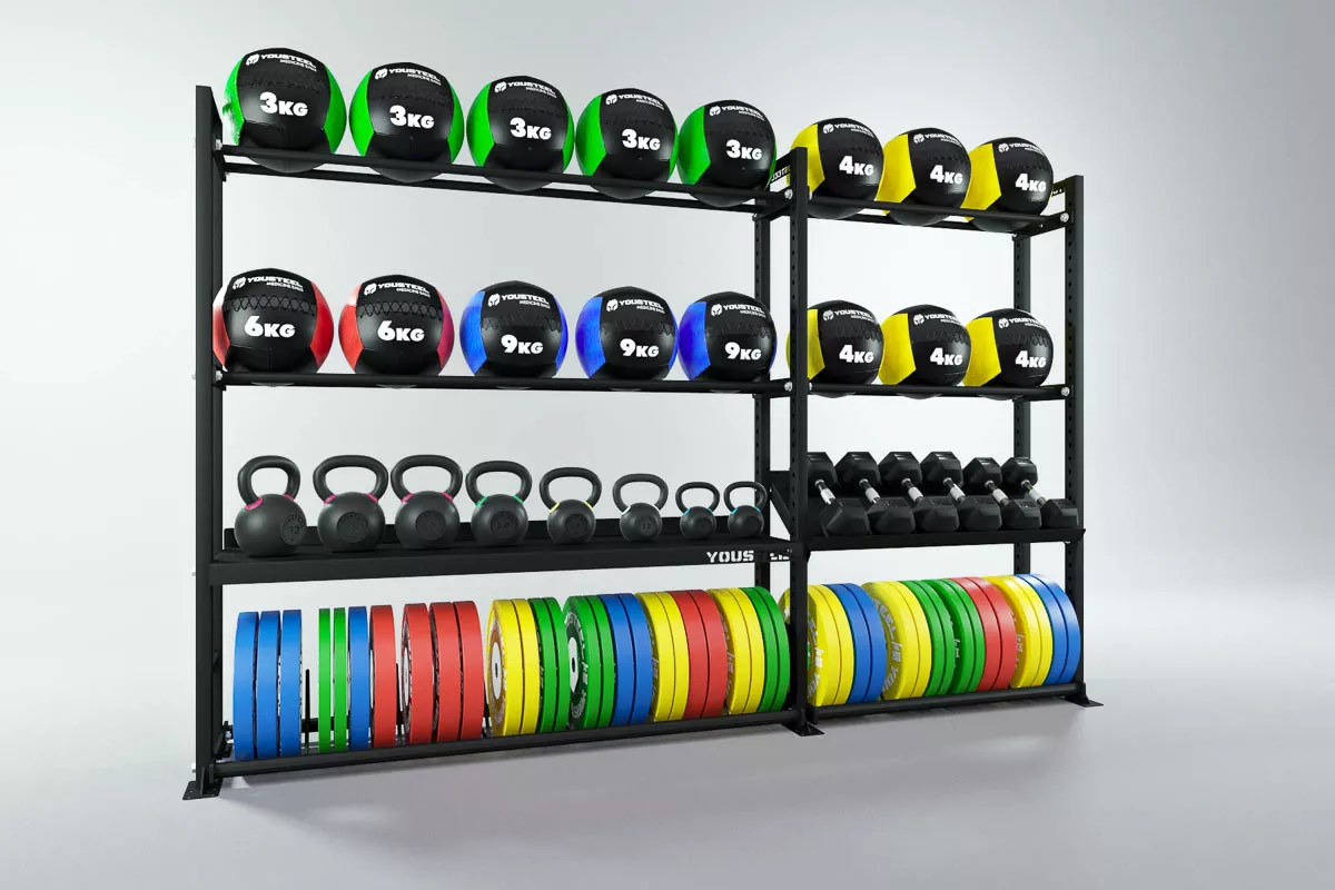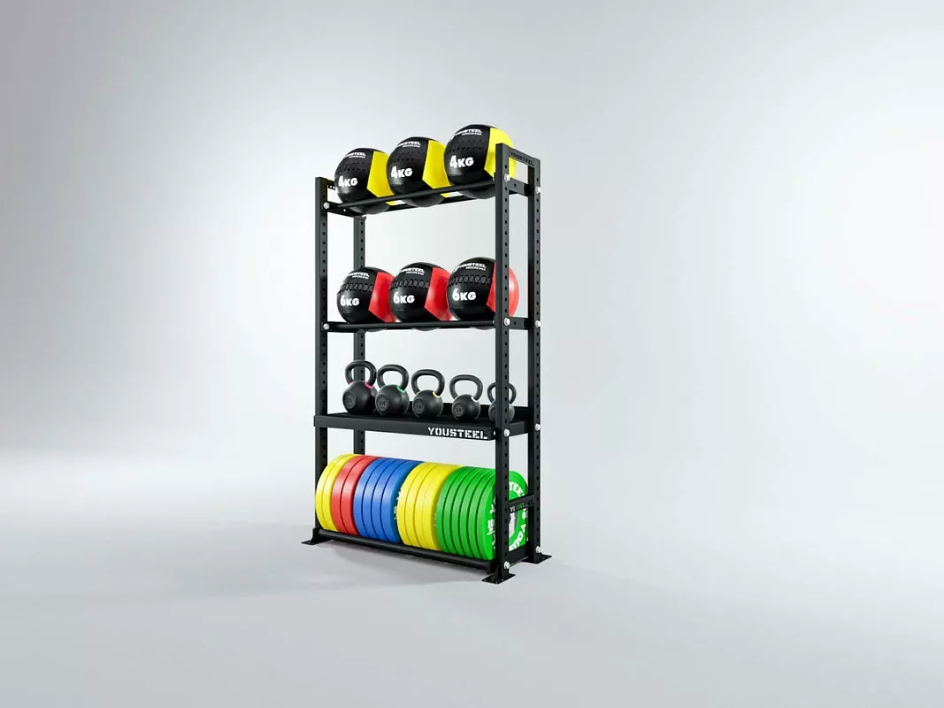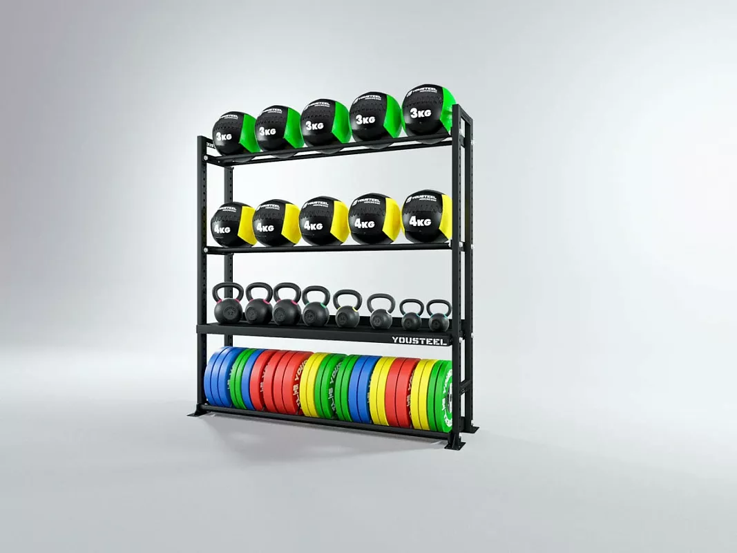 Модульные стеллажи YOUSTEEL – универсальное и простое решение по организации эффективного хранения вашего оборудования в зале. Они отлично вписываются в