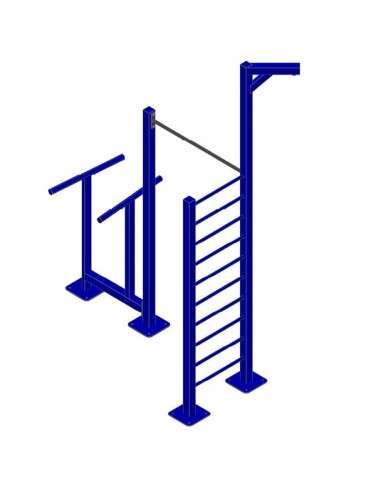 Уличный тренажерный комплекс перекладина, брусья, лестница, канат AVU048