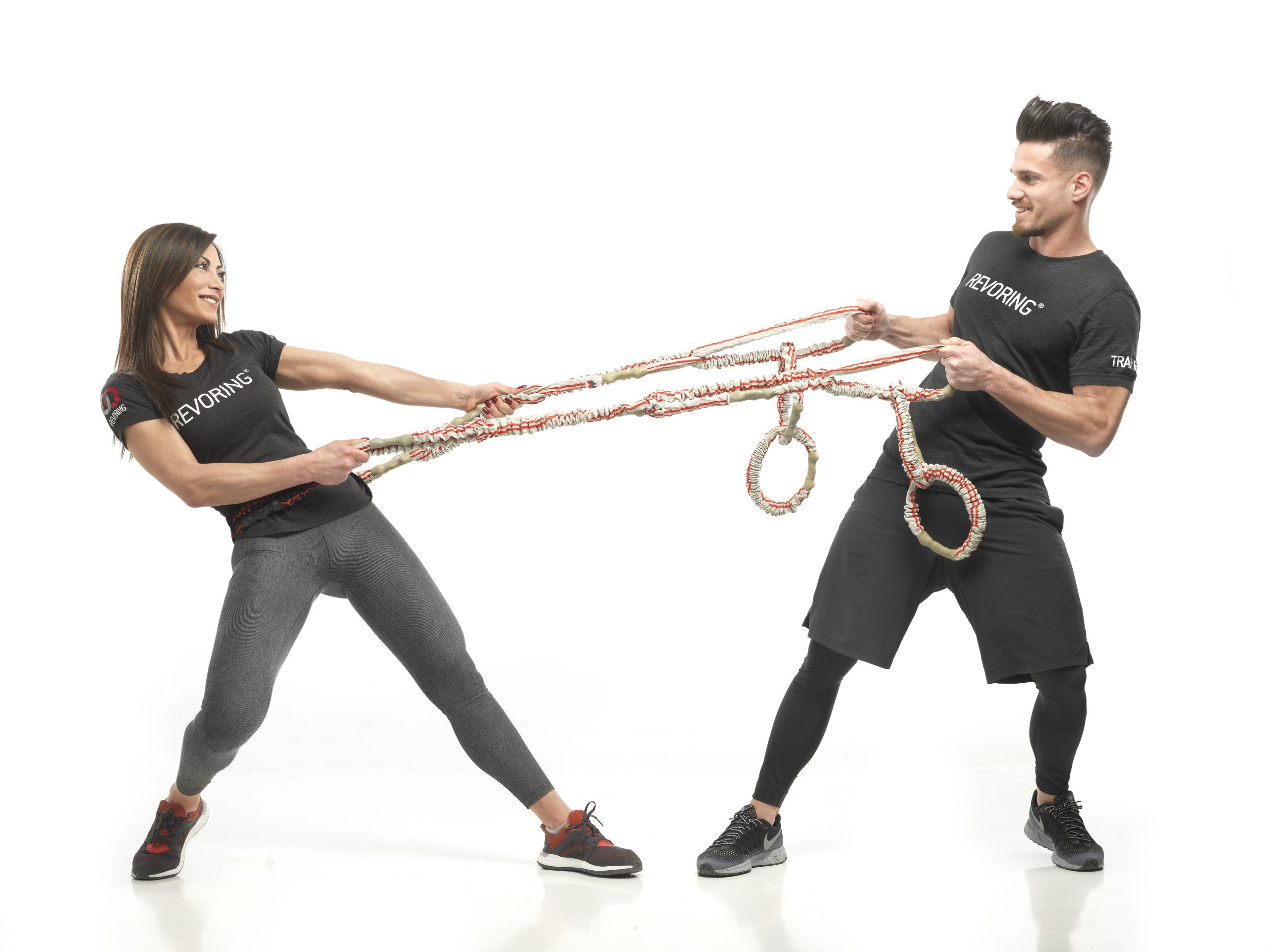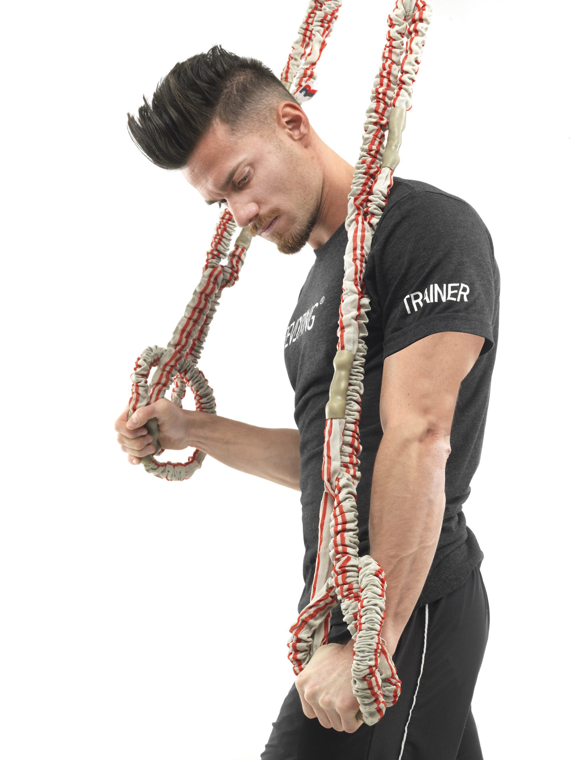 Эспандер Elastiband запатентован и произведен французской компанией Sveltus. Разный размер ячеек 16 и 11 см позволяет применять его для тренировок