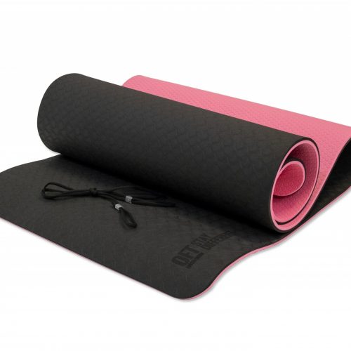 Коврик для йоги 10 мм двухслойный TPE черно-розовый OFT
