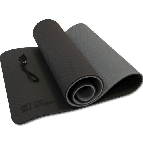Коврик для йоги 10 мм двухслойный TPE черно-серый OFT