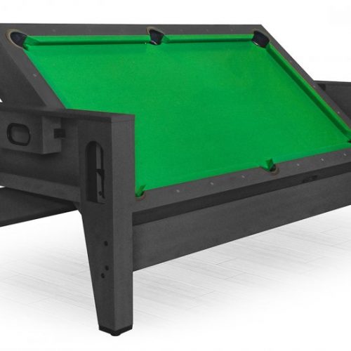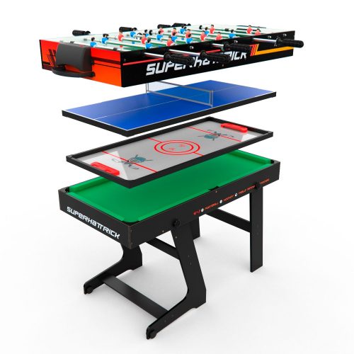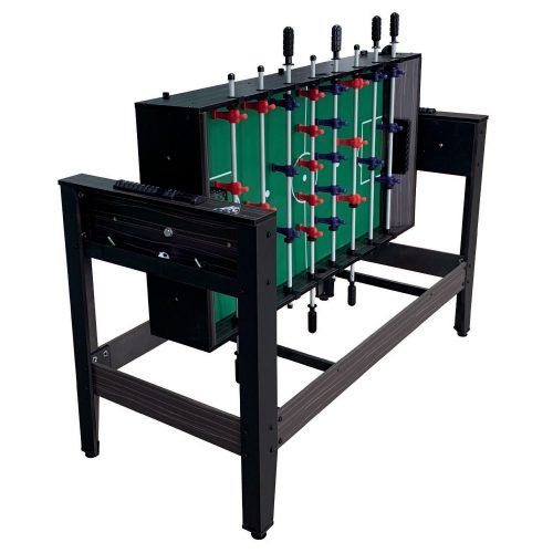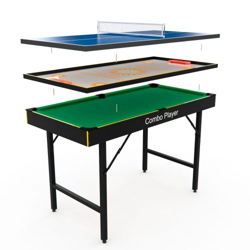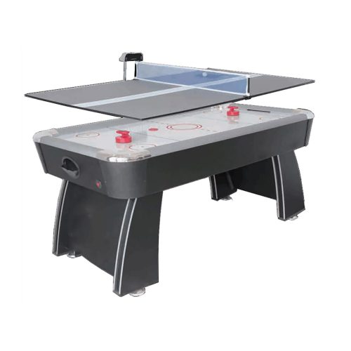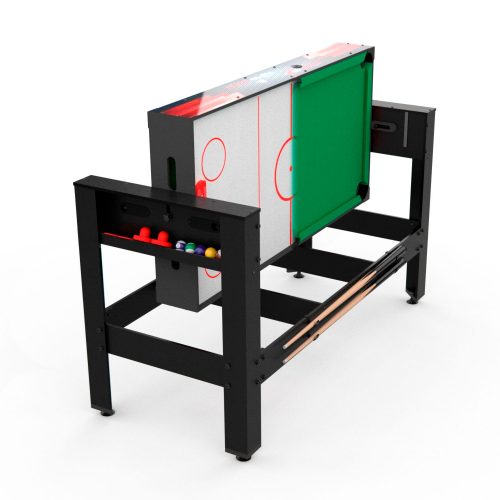 Многофункциональная модель стола — трансформер: бильярд/хоккей/теннис/футбол/аэрохоккей. Для выбора нужной игры необходимо установить новую игровую поверхность. Корпус выполнен из специально обработанного МДФ, сверху покрытого ПВХ-пленкой.