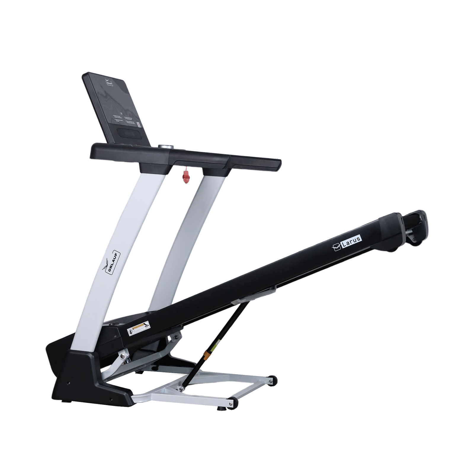 Электрическая беговая дорожка Orlauf Larus — функциональный тренажер для эффективных домашних тренировок. Модель оснащена удобной системой складывания с газлифтом, обеспечивающей
