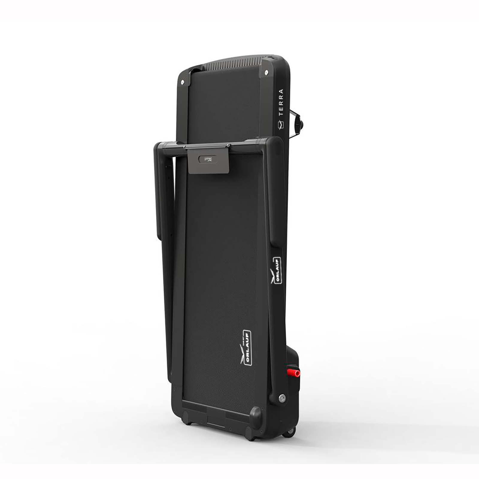 Беговая дорожка Orlauf Terra — функциональный тренажер для домашних тренировок. Система складывания позволяет хранить тренажер как вертикально у стены, так
