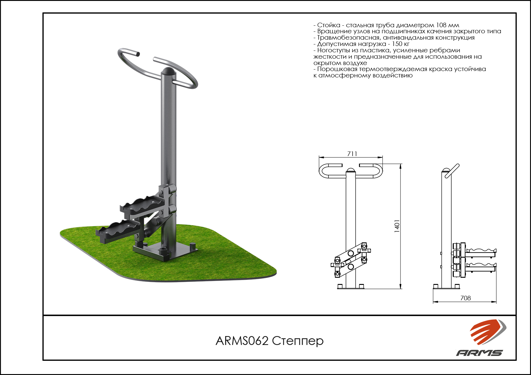 Уличный тренажер Степпер ZAVODSPORTA* предназначен для установки на уличных спортивных площадках с учетом интенсивной эксплуатации в разных климатических условиях. Основание