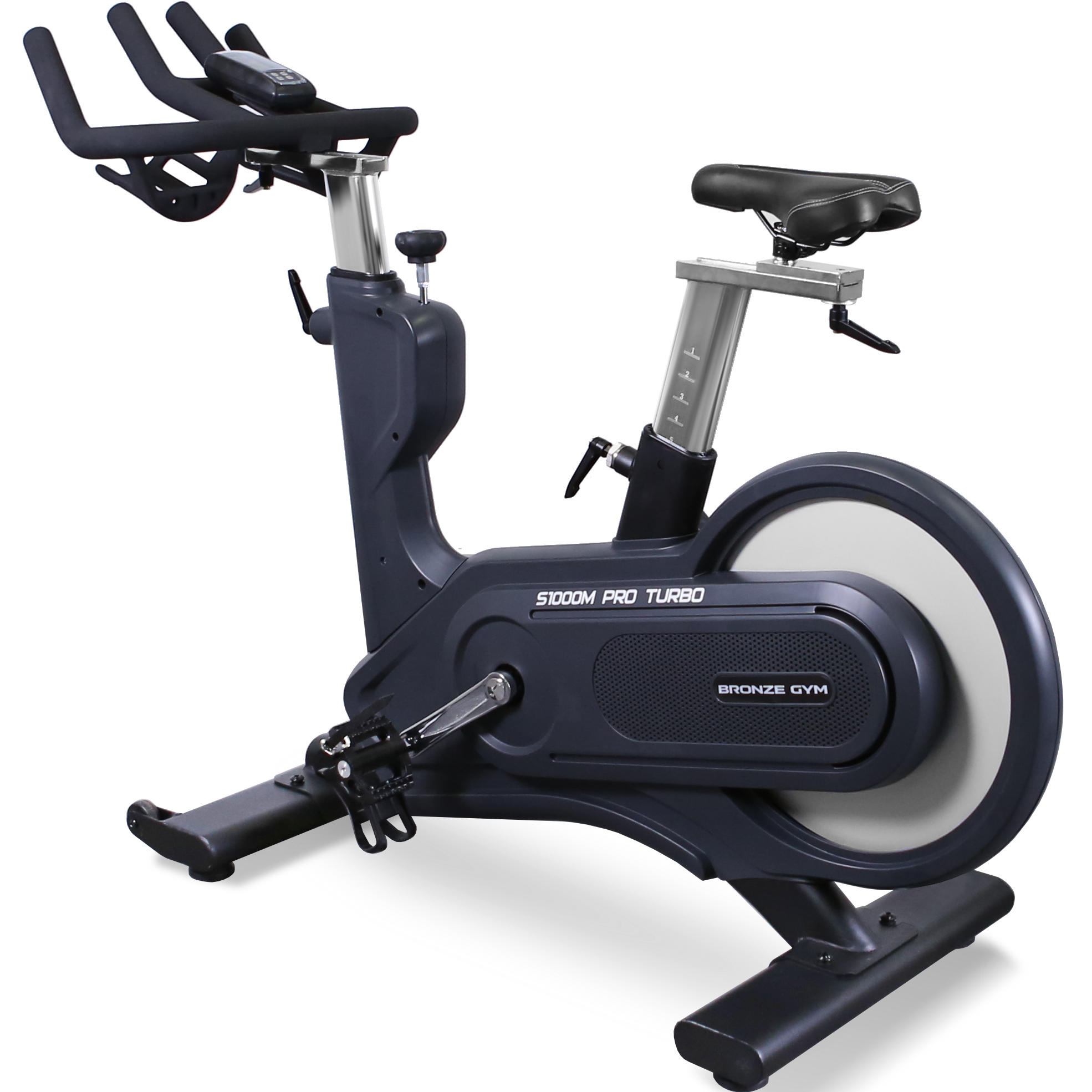 BRONZE GYM S1000M PRO TURBO — профессиональный спин-байк для клубных тренировок в режиме максимальных нагрузок (full commercial). Все узлы и