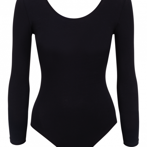 Купальник гимнастический AA-1421, с длинным рукавом, хлопок, черный (36-42)