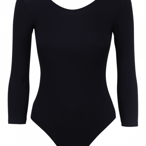 Купальник гимнастический AA-1411, рукав 3/4, хлопок, черный (36-42)