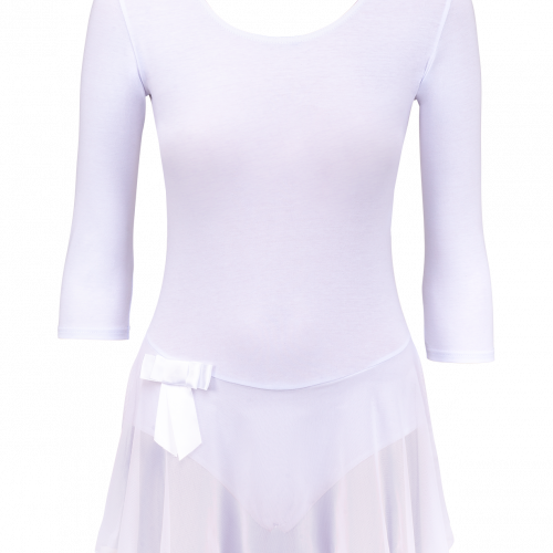 Купальник гимнастический AA-181, рукав 3/4, юбка сетка, хлопок, белый (36-42)
