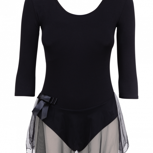 Купальник гимнастический AA-181, рукав 3/4, юбка сетка, хлопок, черный (36-42)