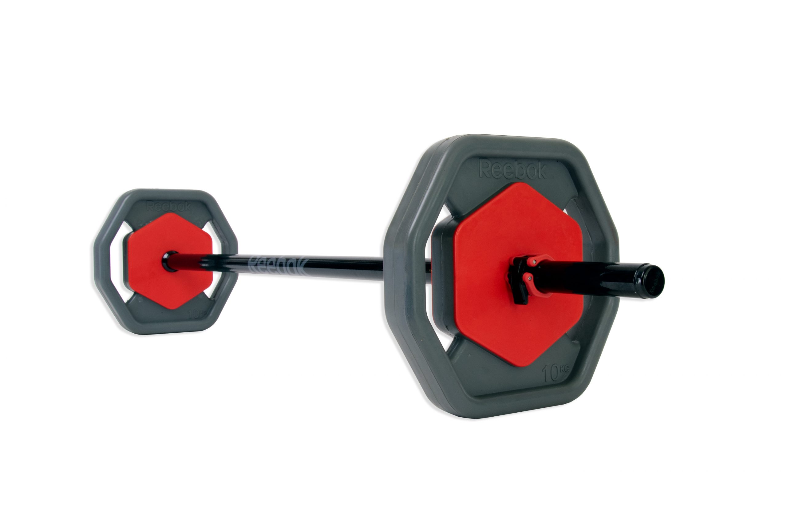 Прямой гриф, утяжеление выполнено из черных монолитных обрезиненных дисков, покрытие грифов- зеркальный хром с противоскользящей насечкой. Гриф штанги со специальными