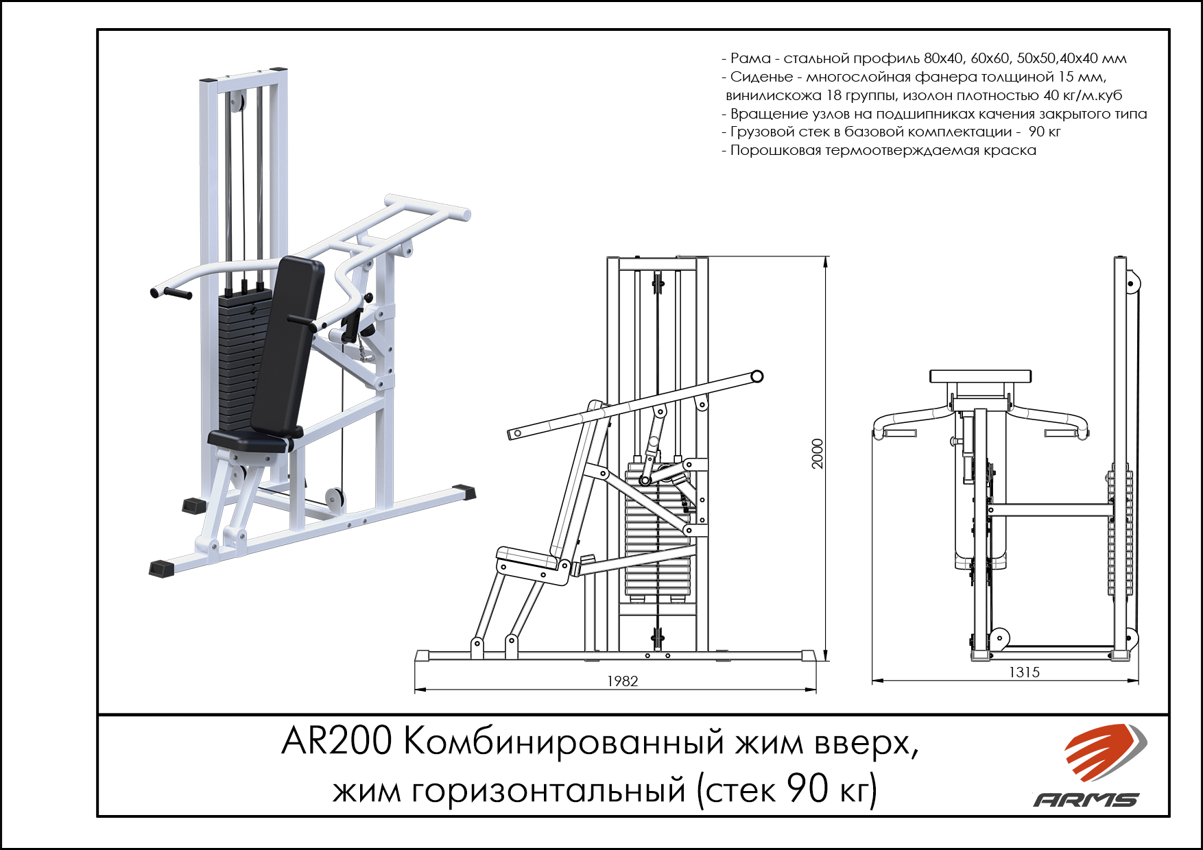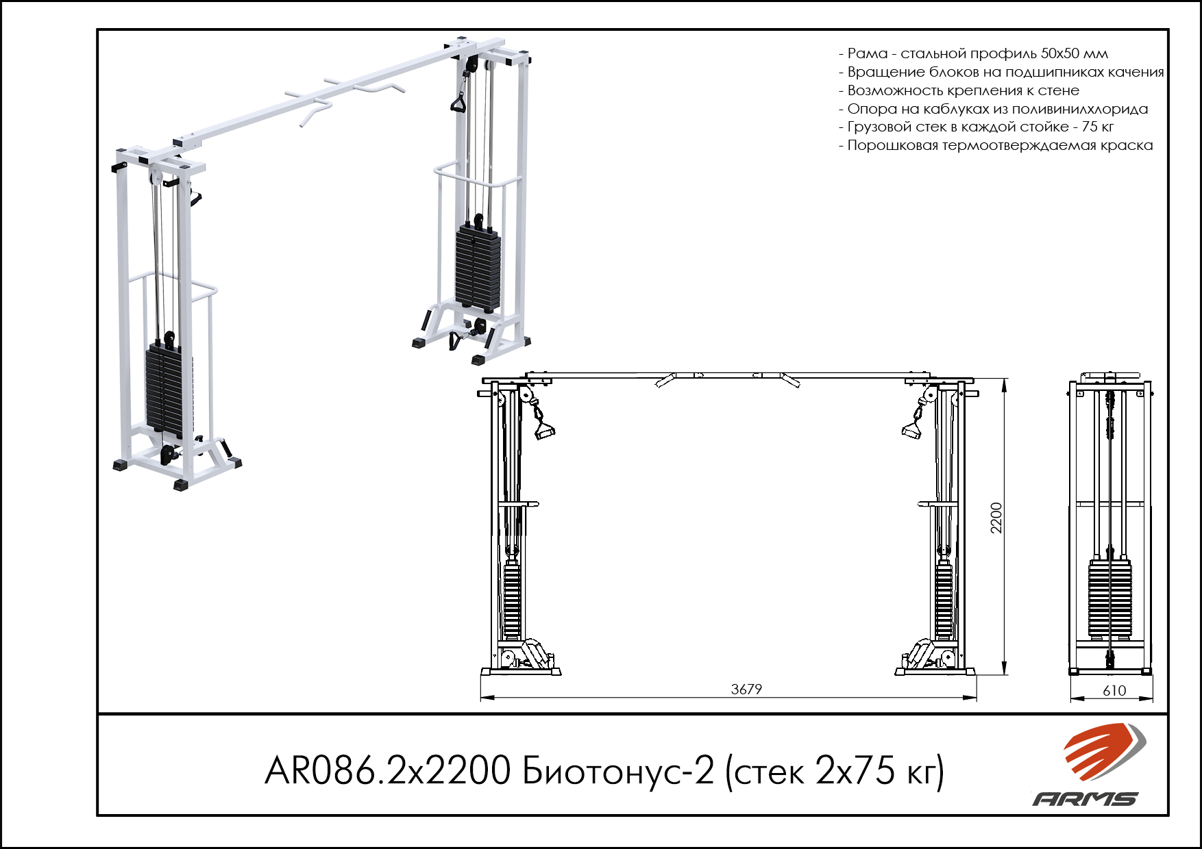 Тренажер предназначен для выполнения упражнения на развитие трицепса. Выполняемое движение: разгибание в локтях. Профессиональный тренажер выполнен из сверхпрочного прямоугольного профиля