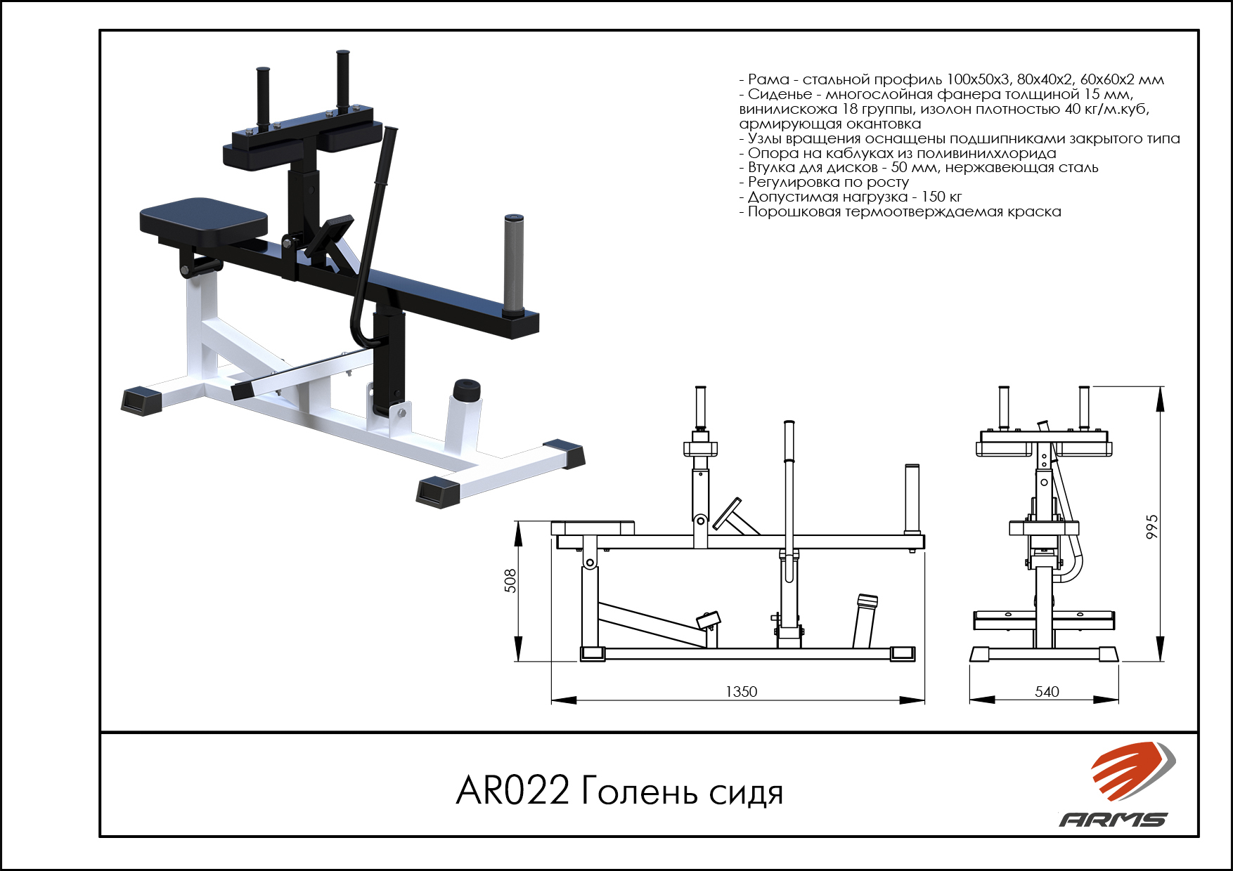 Цвет рамы — Черный металлик (другие цвета-опционально).Цвет обивки — Черный (другие цвета-опционально).Габариты (Д*Ш*В) мм — 1350*760*430.Профиль — 100*50*2,5 мм.Вес —