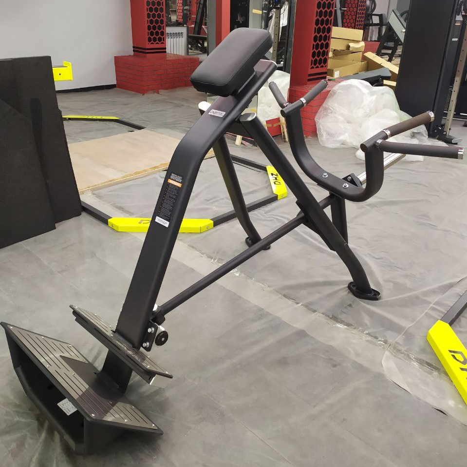 Профессиональный тренажер для коммерческого использования E7065 Приседание предназначен для тренировки больших ягодичных мышц, квадрицепсов и икроножных мышц. Основа выполнена из