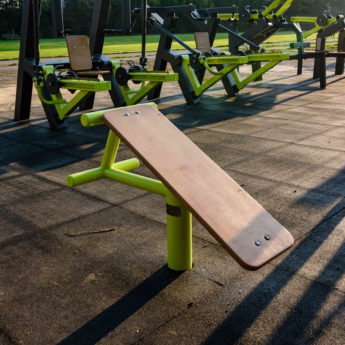Уличный тренажер Скамья для пресса ZAVODSPORTA* предназначен для установки на уличных спортивных площадках с учетом интенсивной эксплуатации в разных климатических