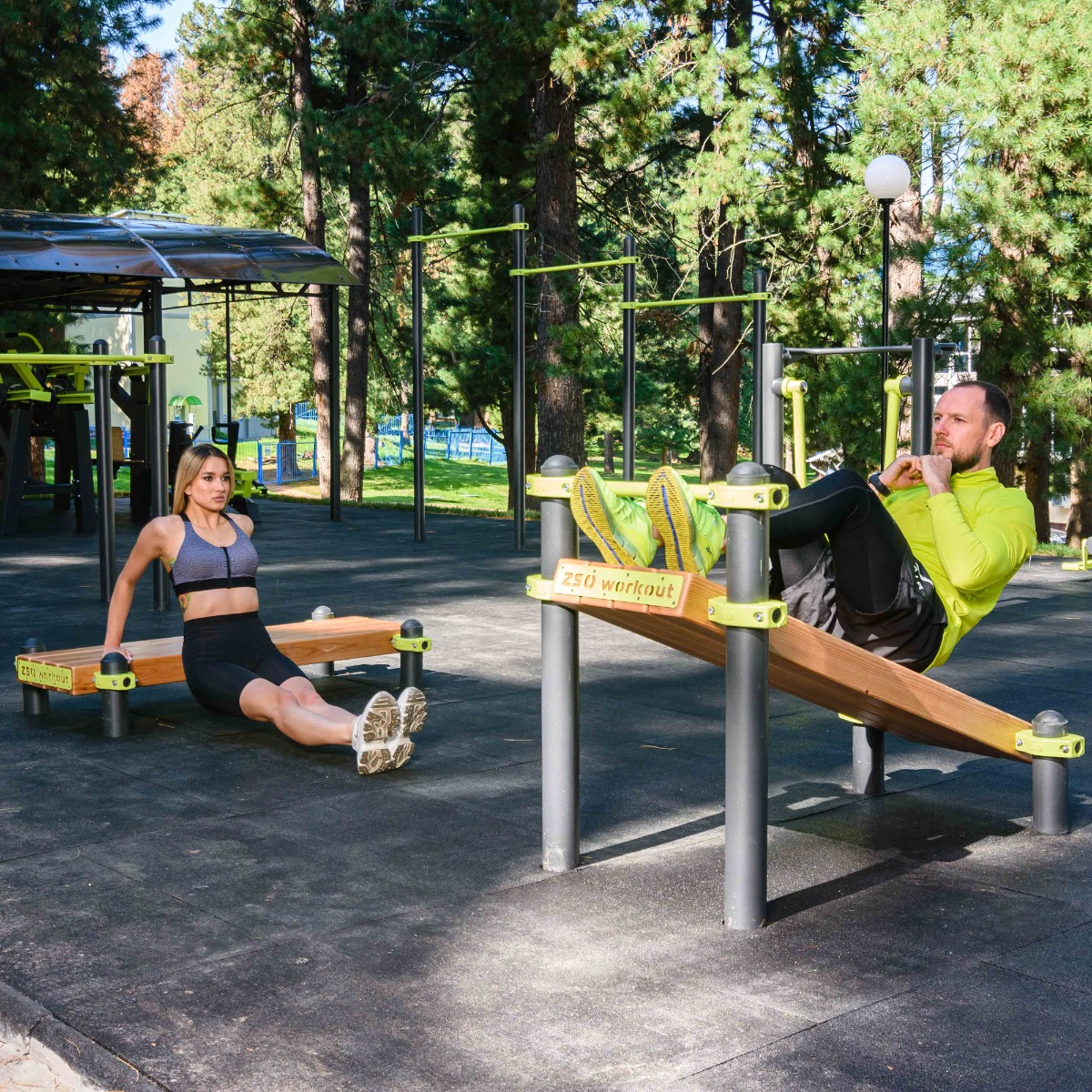 Уличная наклонная скамья для упражнений на пресс ZAVODSPORTA* предназначена для установки на уличных спортивных площадках с учетом интенсивной эксплуатации в