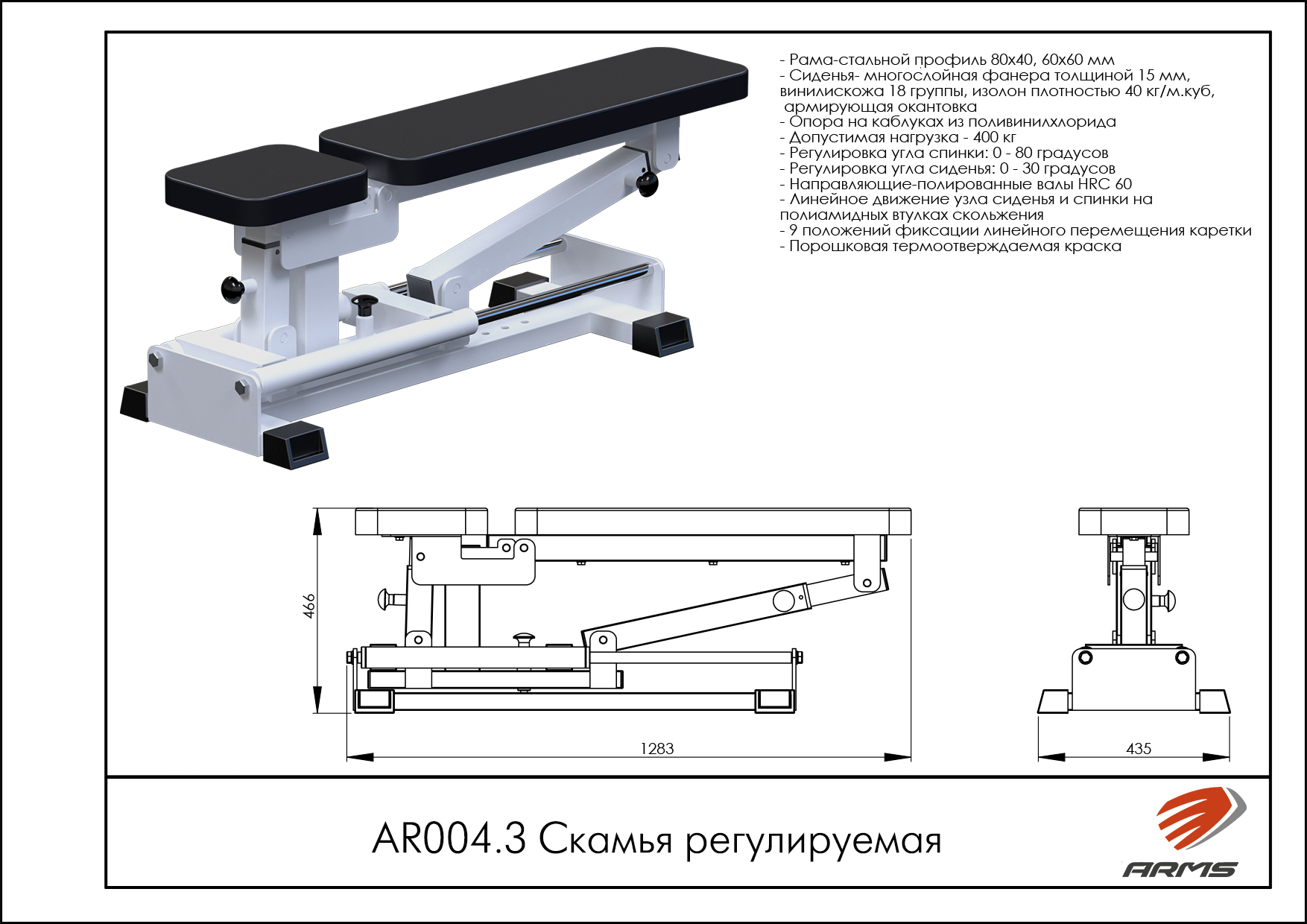 Удобная универсальная скамья, регулируется угол наклона сиденья скамьи, предназначена для выполнения упражнения по укреплению мышц пресса. Положение тела на такой