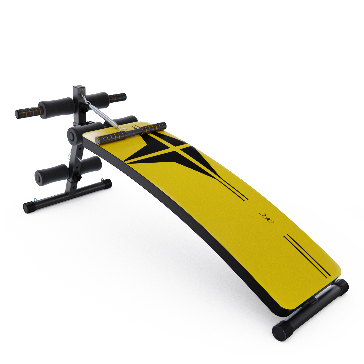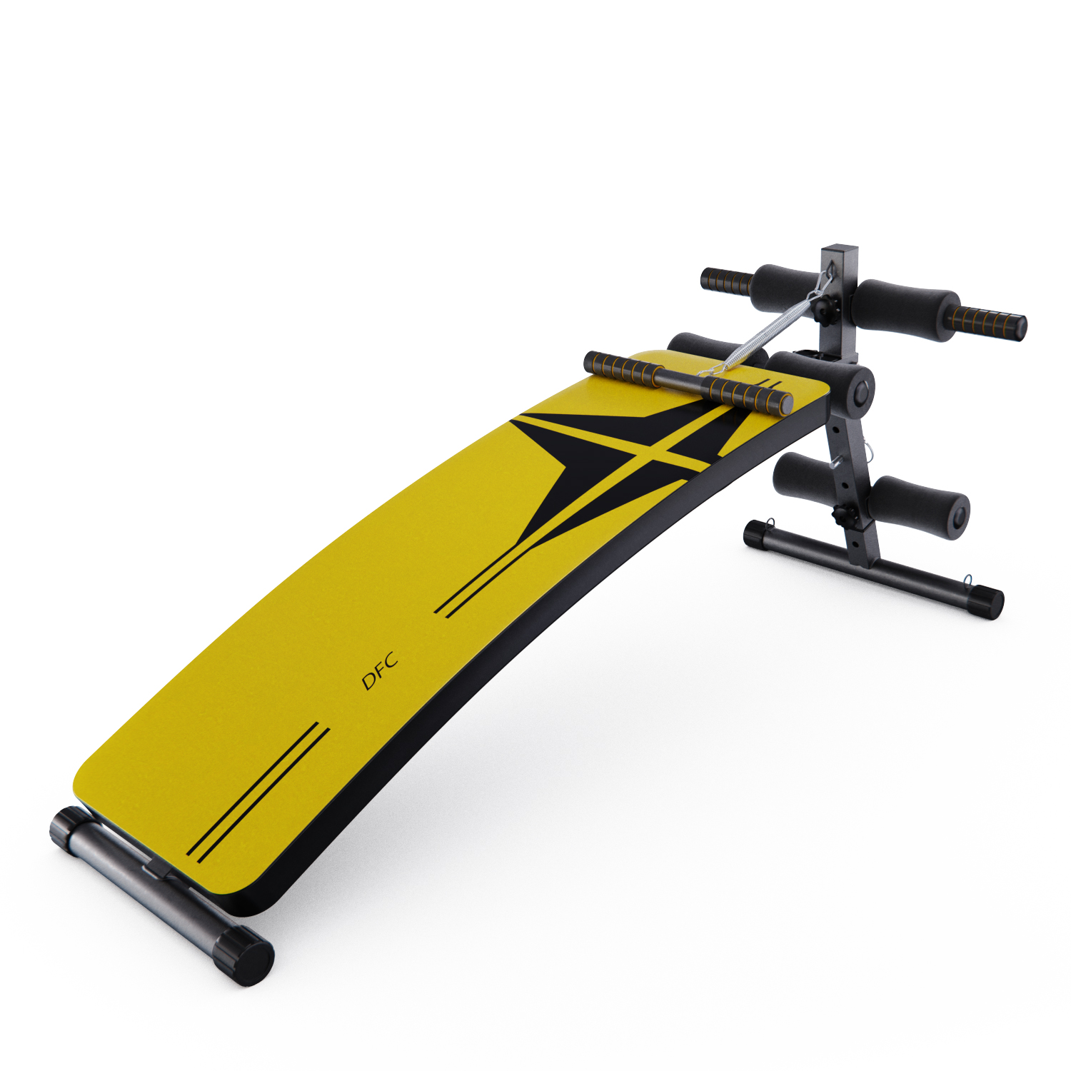 Скамья для пресса DFC. Тренажер предназначен для домашнего использования. Изогнутая поверхность. Удобные валики. Регулируемый угол наклона скамьи. В комплекте две ручки