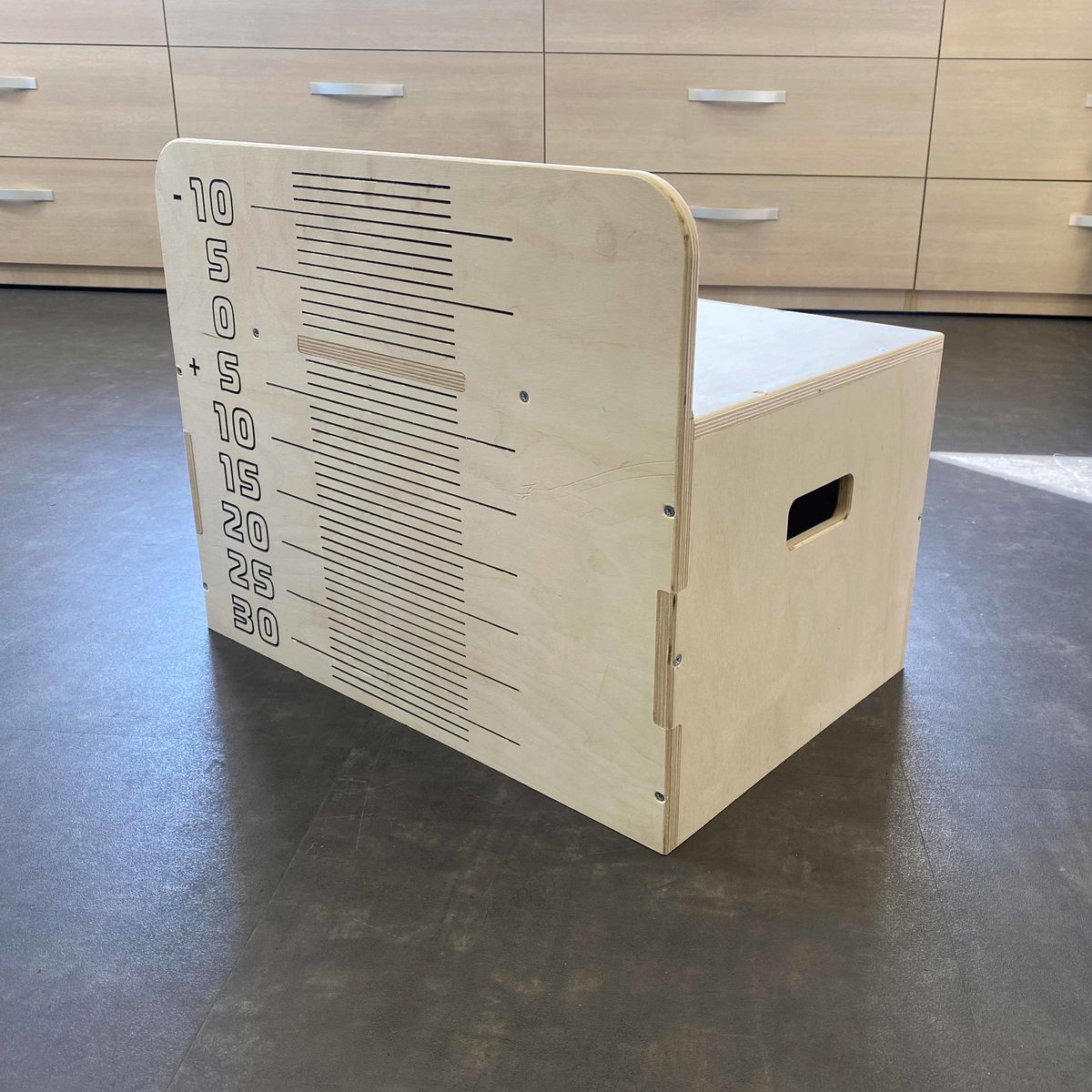 Тумба используется для сдачи наклонов вперед с прямыми ногами. Габариты: 600×400×485 мм Вес: 5 кг. Конструкция тумбы выполнена из фанеры