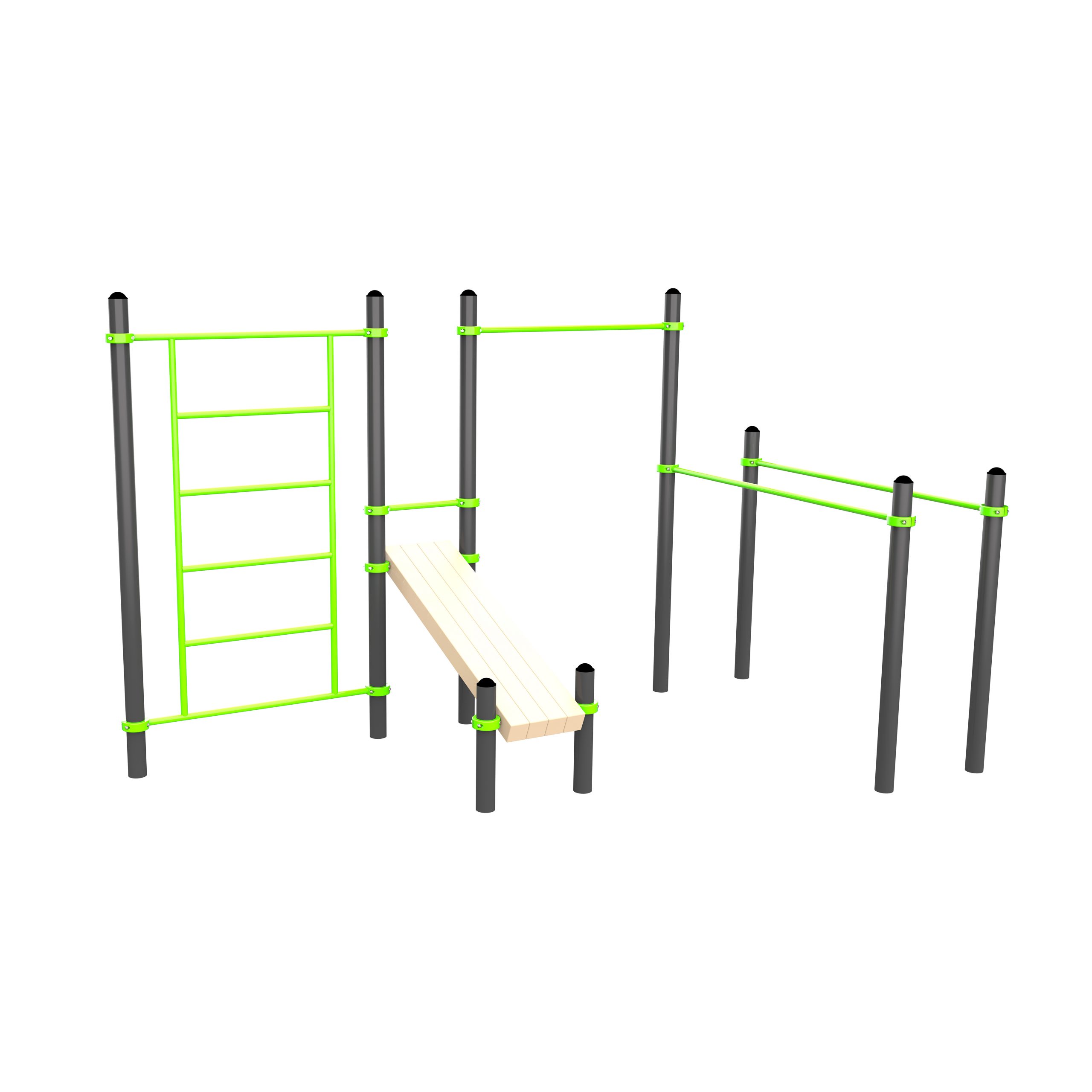 W321 Воркаут (3 турника, шведская стенка, 2 наклонные скамьи) ZAVODSPORTA