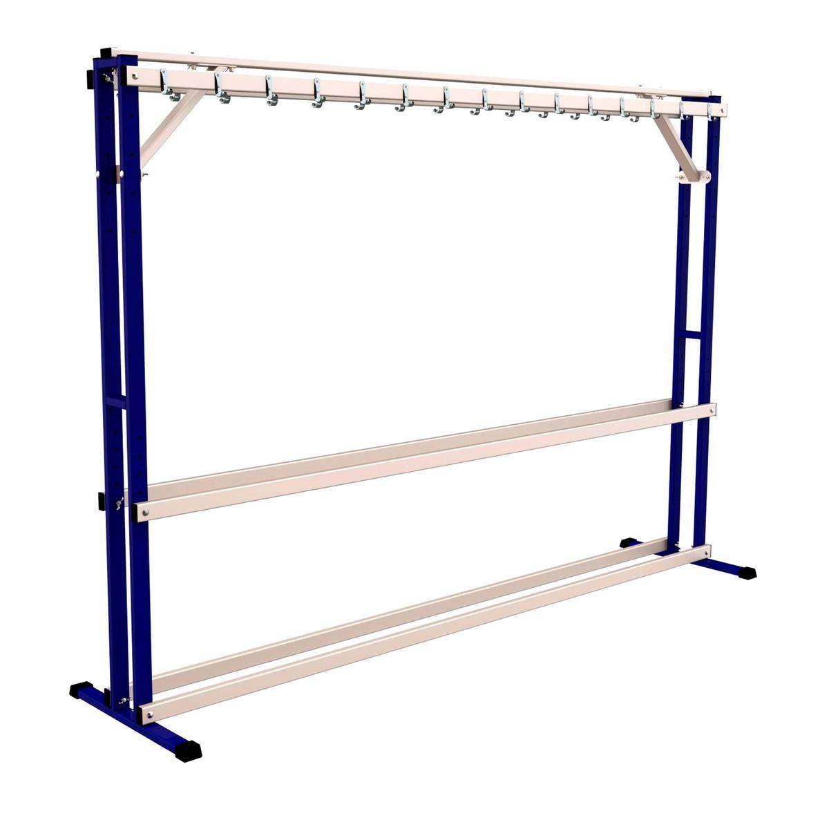 Стойка предназначена для хранения беговых лыж и лыжных палок в спортивных учреждениях, предприятиях и т.д., с возможностью регулировки по высоте,