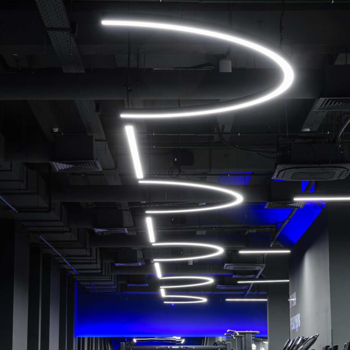 Светодиодный светильник линейного типа, длиной 2,5 метра, предназначен для общего и акцентного освещения в спортивных и коммерческих интерьерах. Подходит для