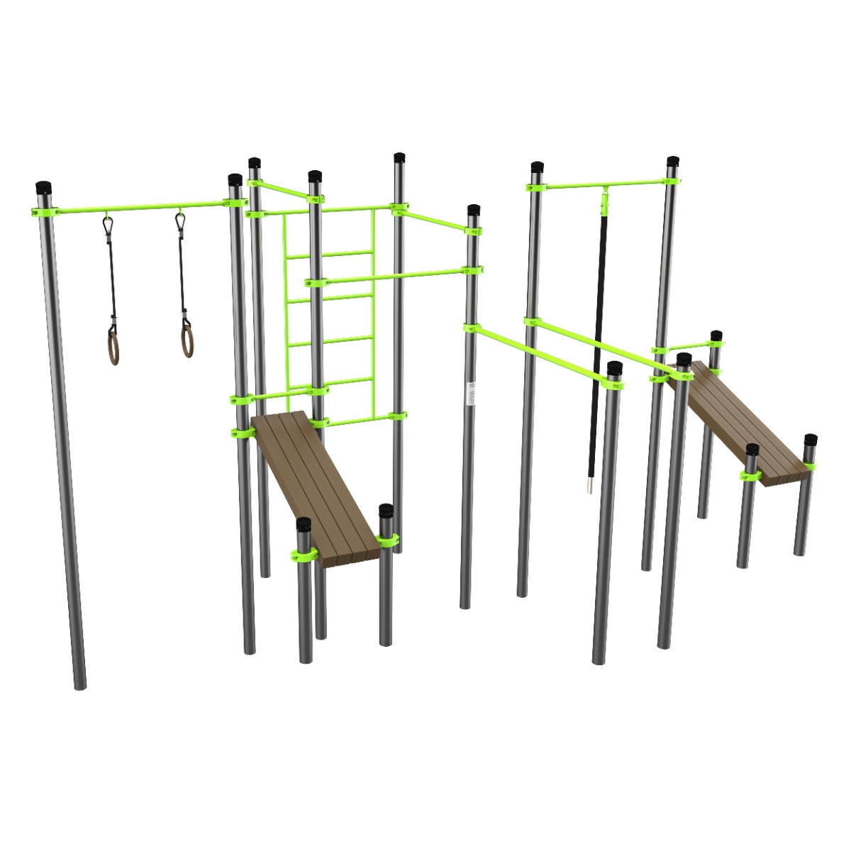 W261 Воркаут (3 турника, 2 скамьи для пресса, брусья, швед. стенка, кольца, канат) ZAVODSPORTA