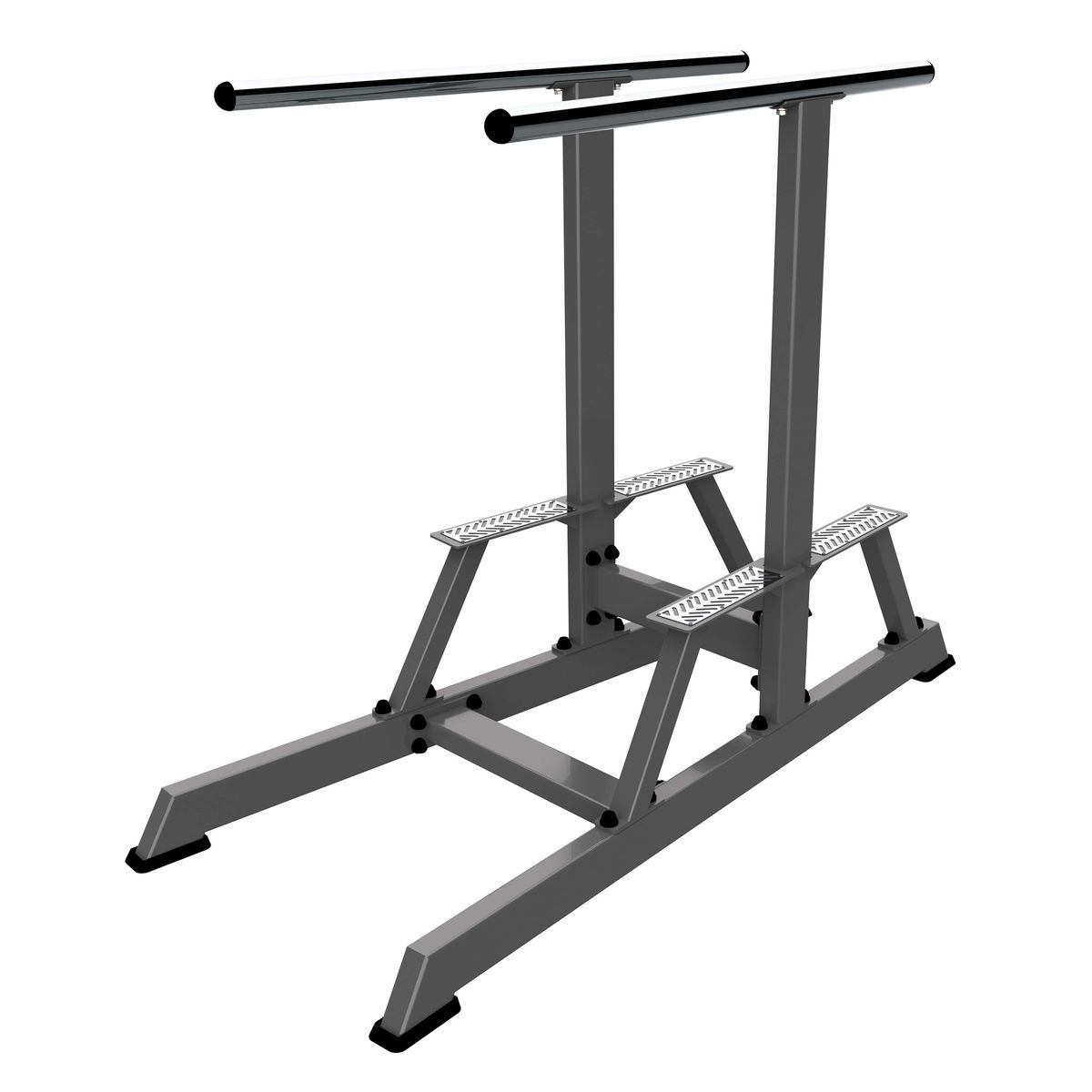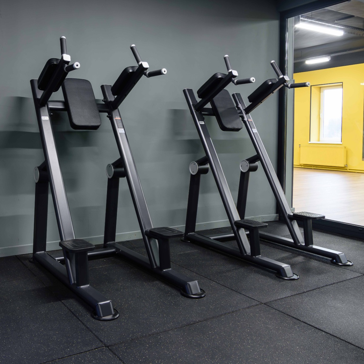 Этот тренажер предназначен для упражнений с собственным весом: отжимания на брусьях для трицепсов и грудных мышц; боковые скручивания для косых