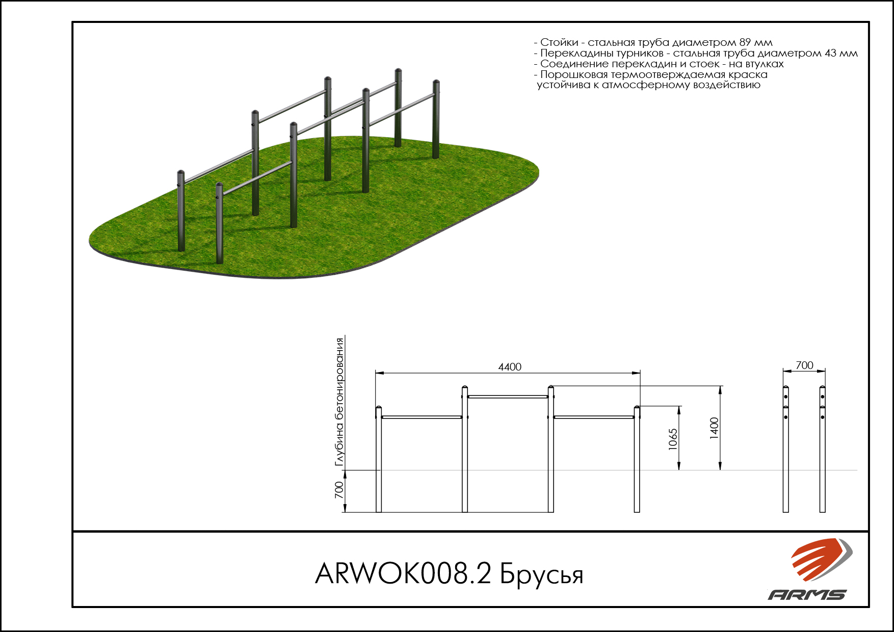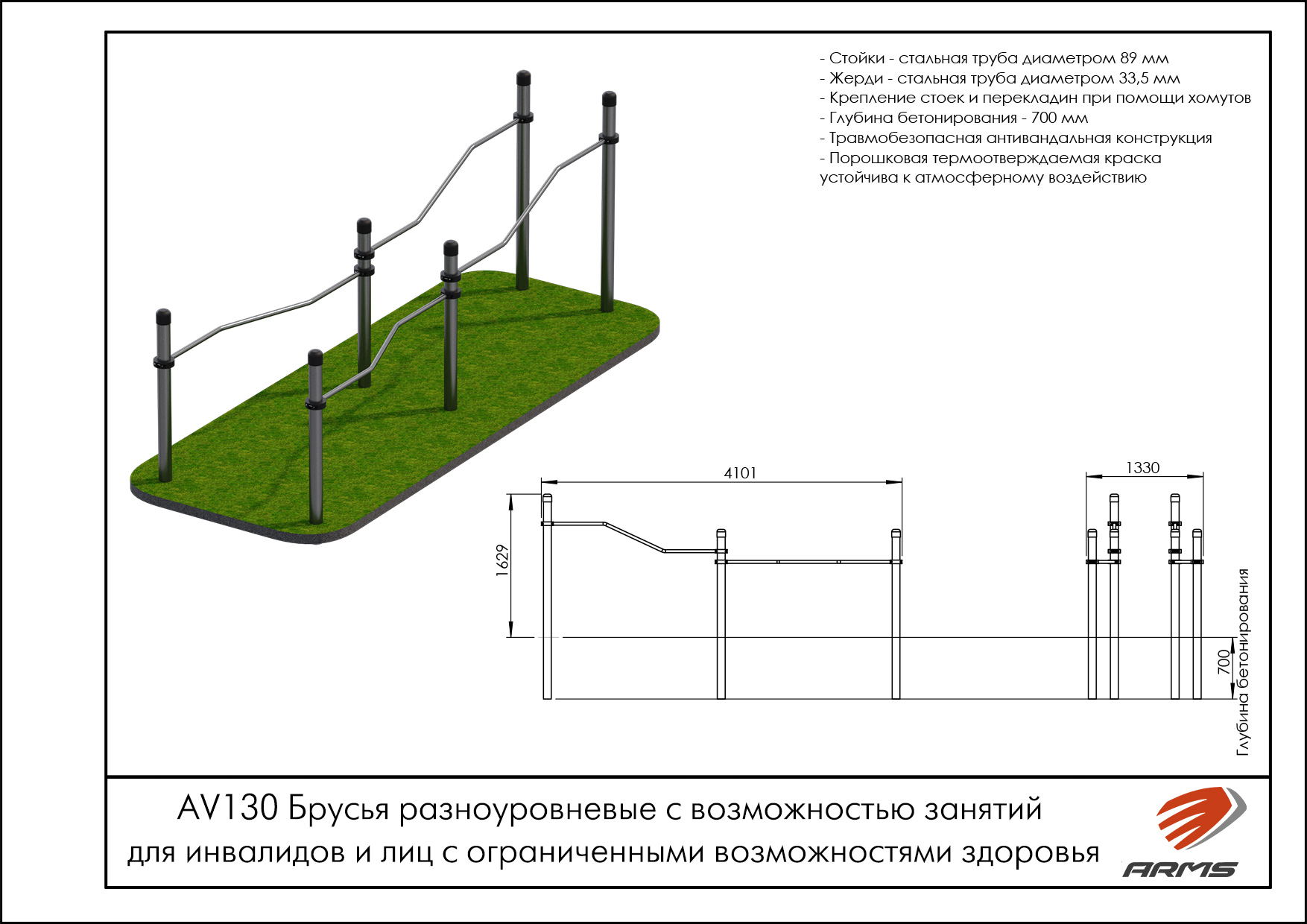 Уличные Брусья разноуровневые изогнутые (подходит людям с ограниченными возможностями здоровья) ZAVODSPORTA* предназначены для установки на уличных спортивных площадках с учетом