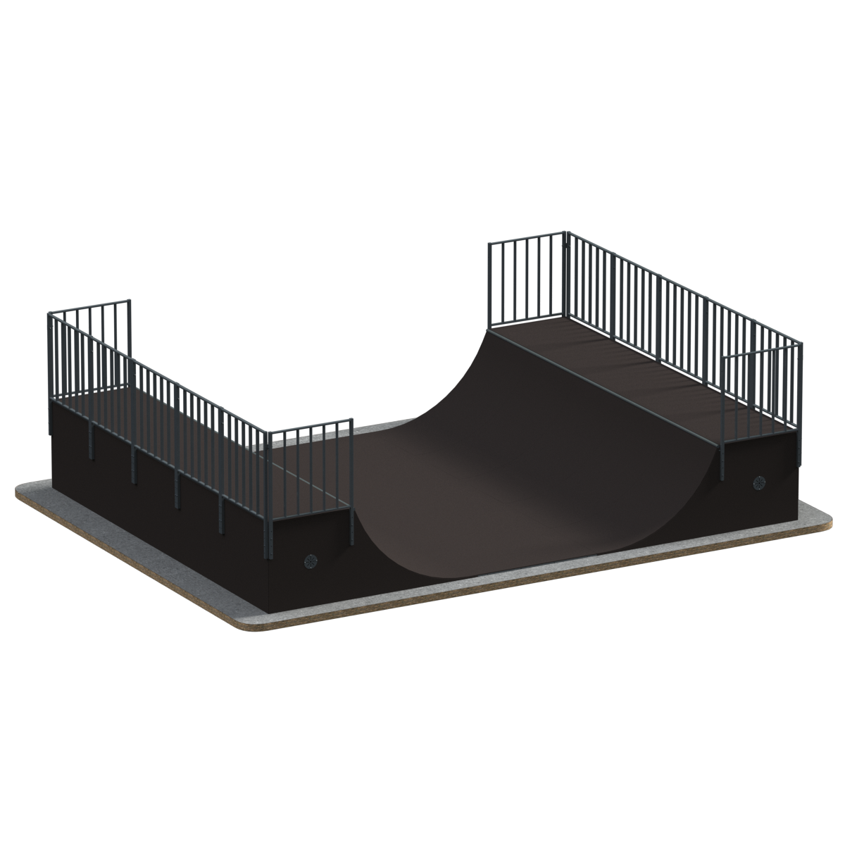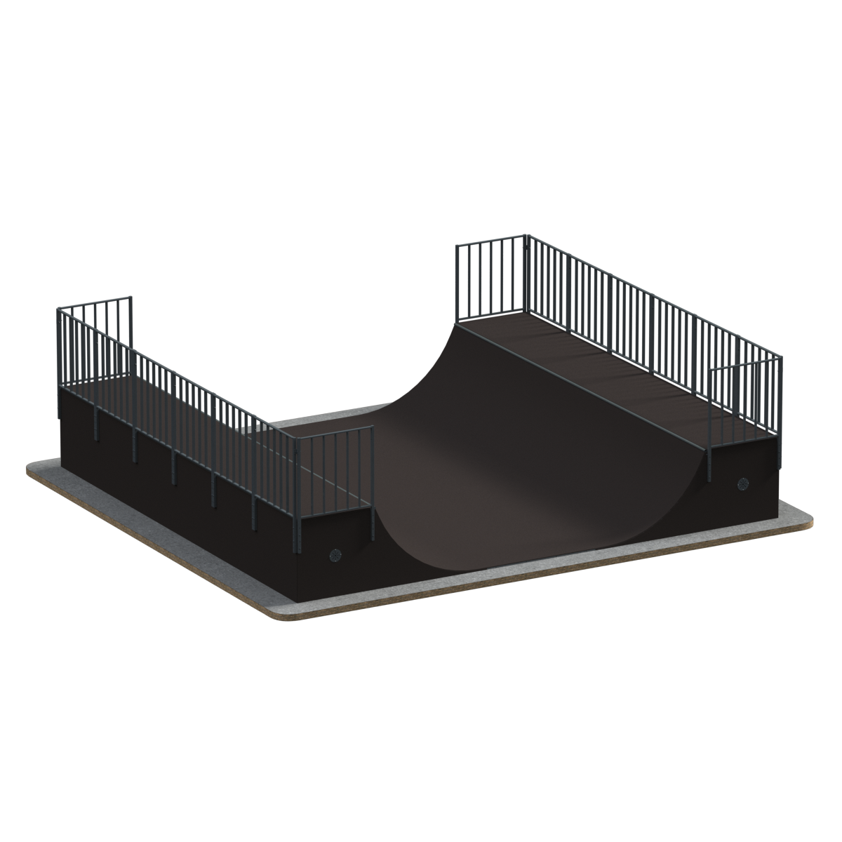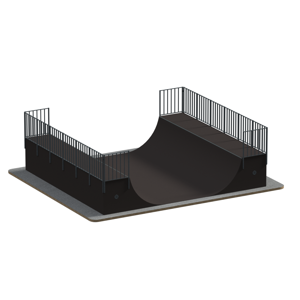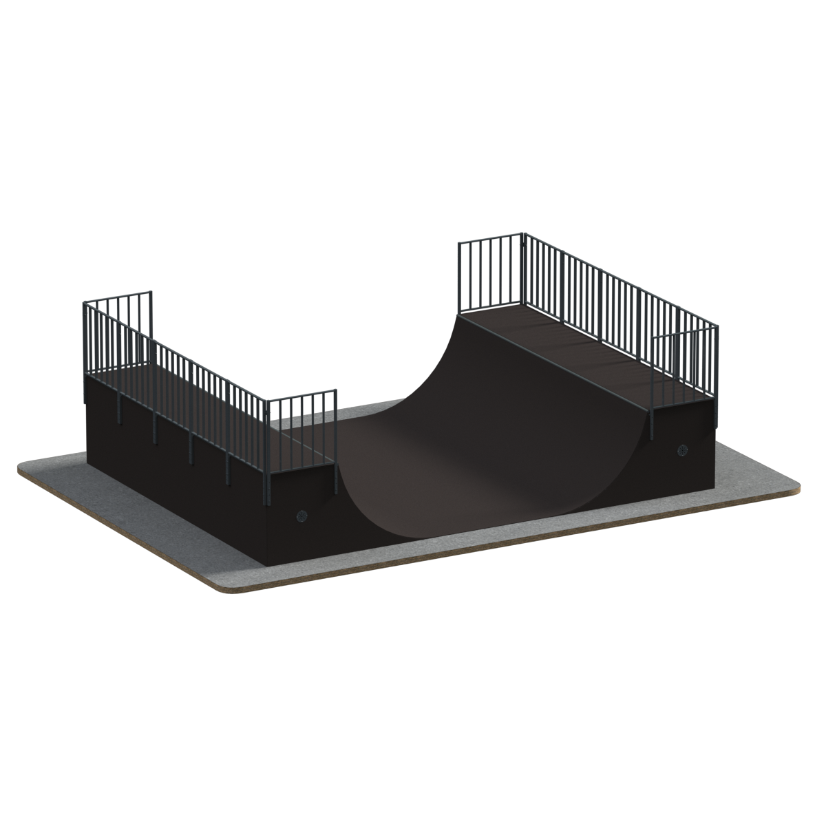Предназначение: Рампа, по-другому Халф-пайп, представляет собой фигуру из двух радиусов, повернутых друг к другу. Благодаря небольшой высоте, на рампе могут