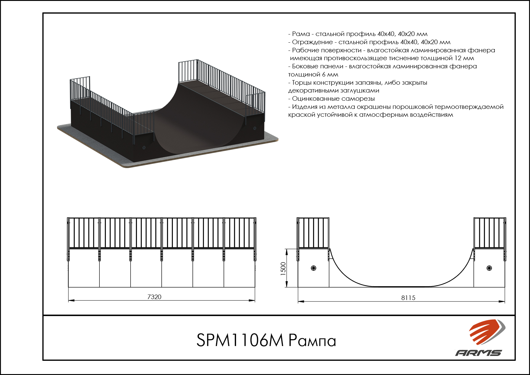 Предназначение: Рампа, по-другому Халф-пайп, представляет собой сложную конструкцию из двух радиусов, повернутых друг к другу с различной высотой подъема и