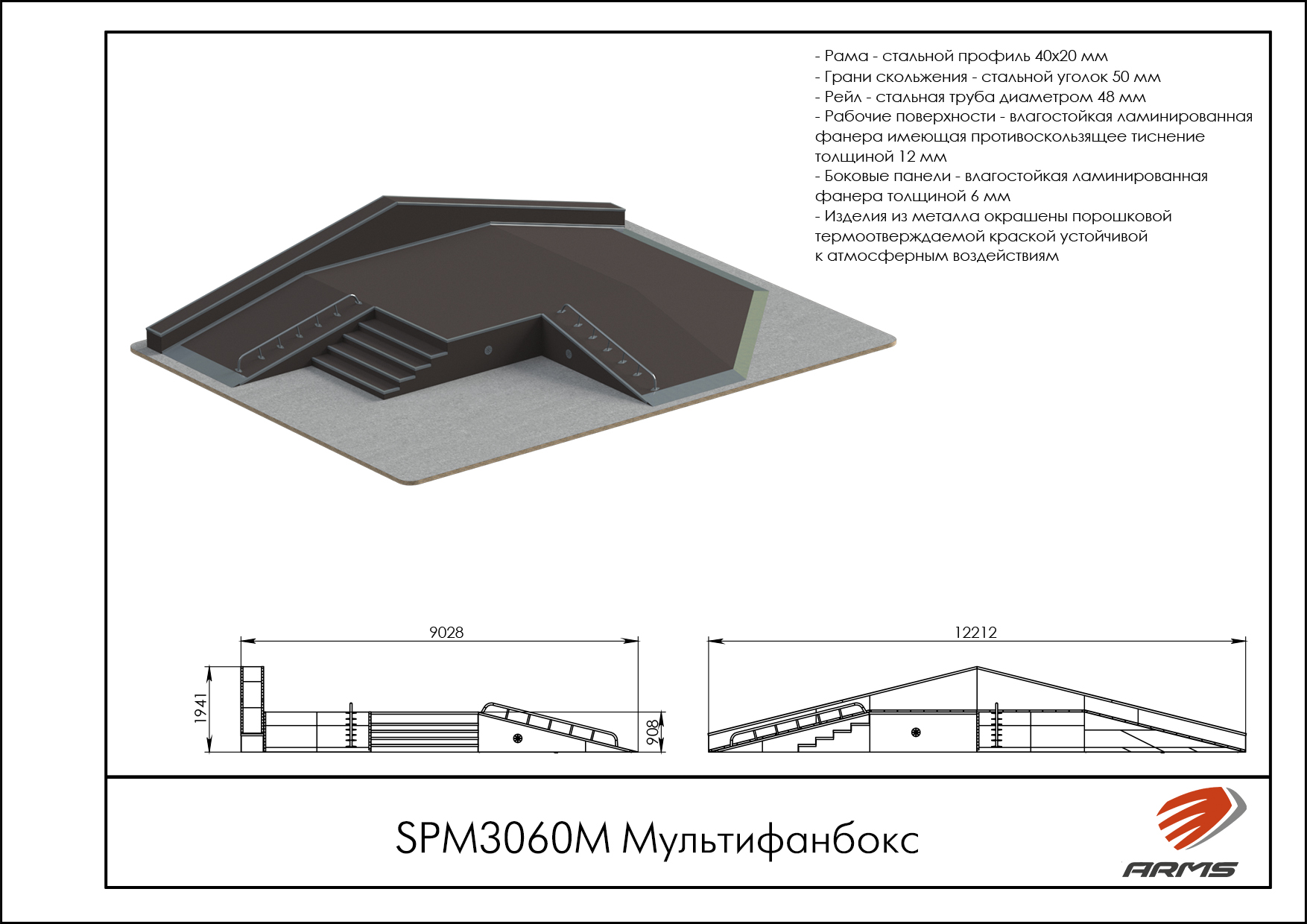 Предназначение: Разнообразный мультифанбокс со скатами в три стороны и приставным кикбоксом, а также с дополнительными элементами: ступени, рейлы! Вся конструкция
