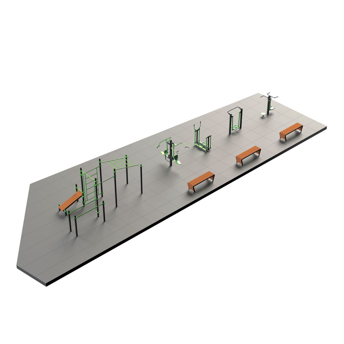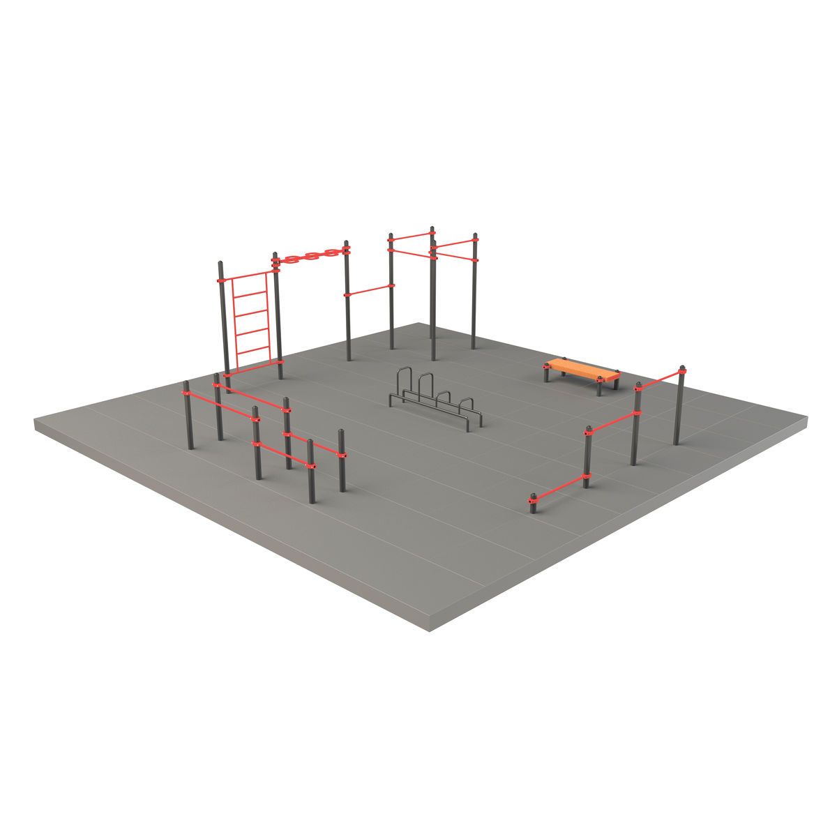 Оборудование спортивной площадки S-1004 от ZAVODSPORTA* предназначено для комплексного оснащения уличной зоны тренировки. Конструкция спроектирована для круглогодичной эксплуатации в уличных