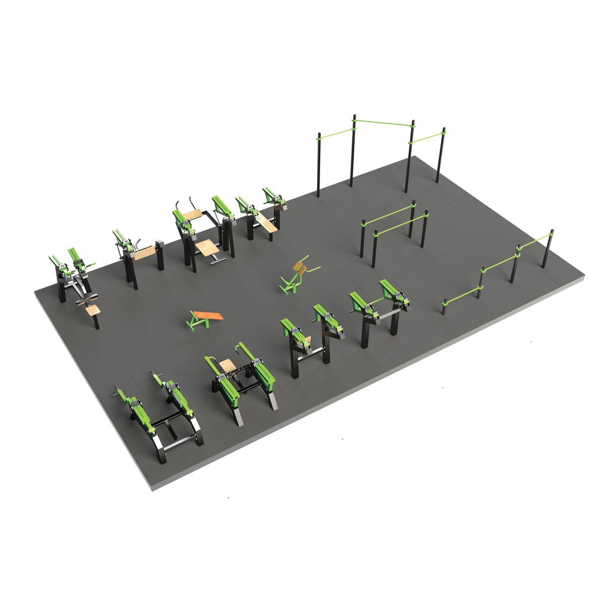Оборудование спортивной площадки S-1001 от ZAVODSPORTA* предназначено для комплексного оснащения уличной зоны тренировки. Конструкция спроектирована для круглогодичной эксплуатации в уличных