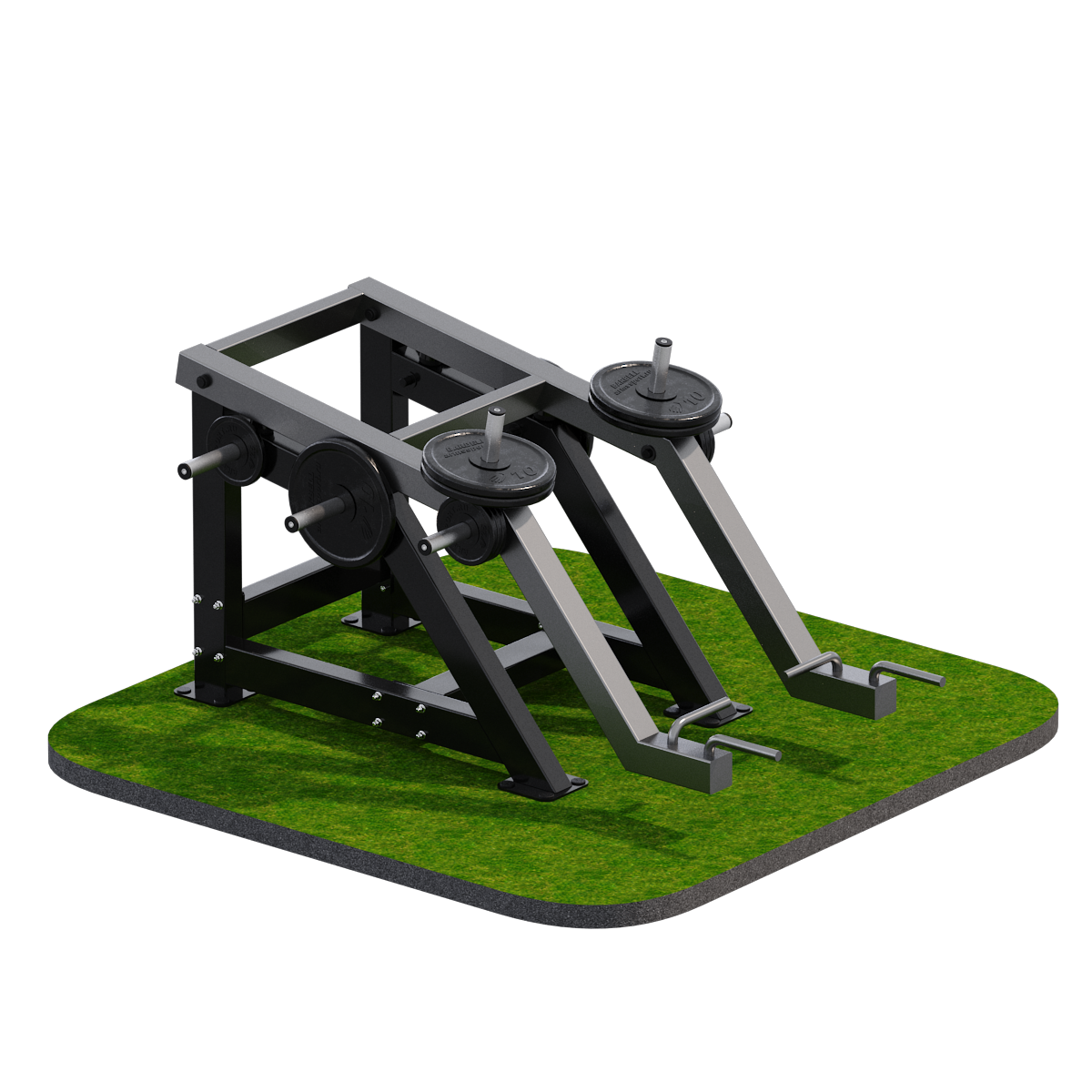 Инструкция по применению: Тренажер предназначен для одного пользователя. Выбираем необходимую нагрузку с помощью весов (дисков). Принимаем позицию присед под рычагами