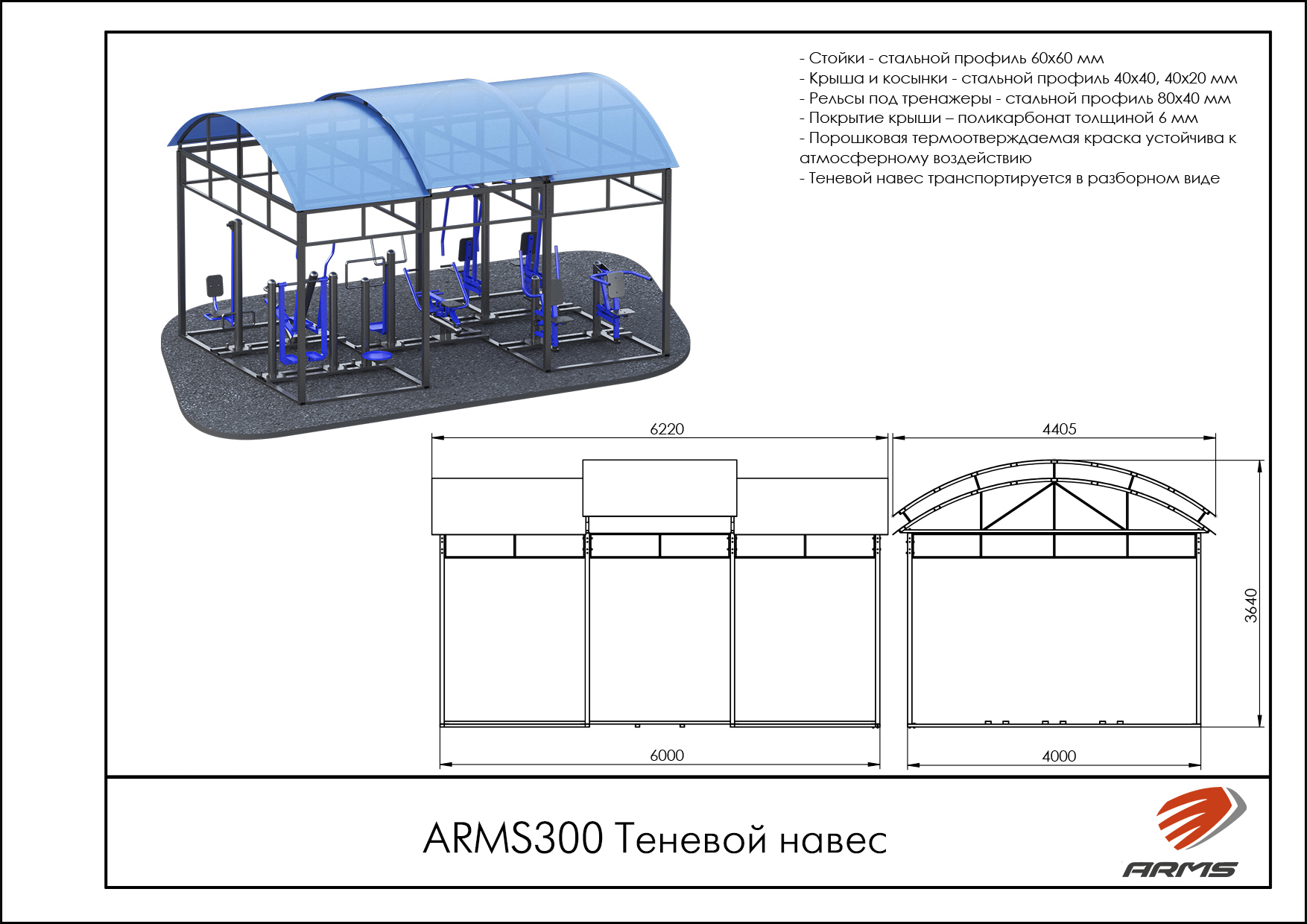 Предназначение: Теневой навес предназначен для уличных тренажеров.