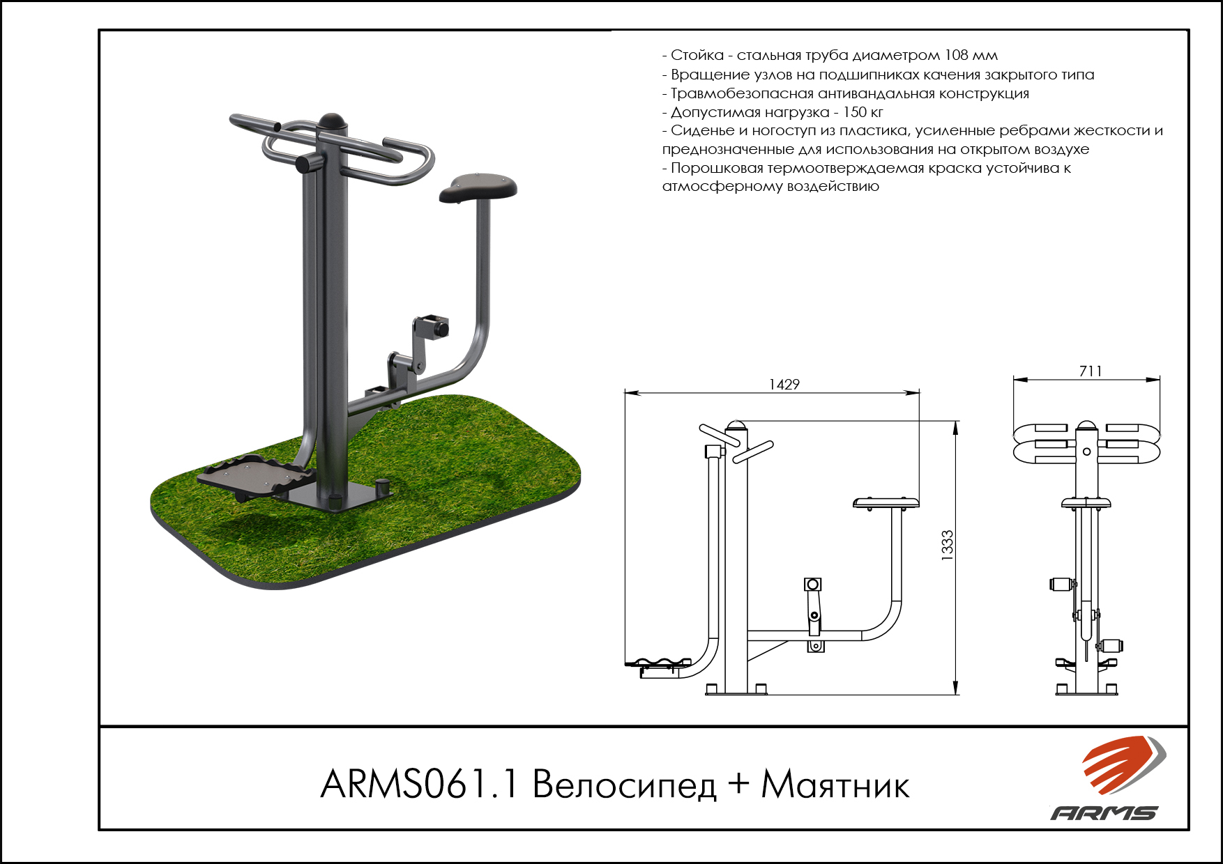 Уличный тренажер Велосипед ZAVODSPORTA* предназначен для установки на уличных спортивных площадках с учетом интенсивной эксплуатации в разных климатических условиях. Основание